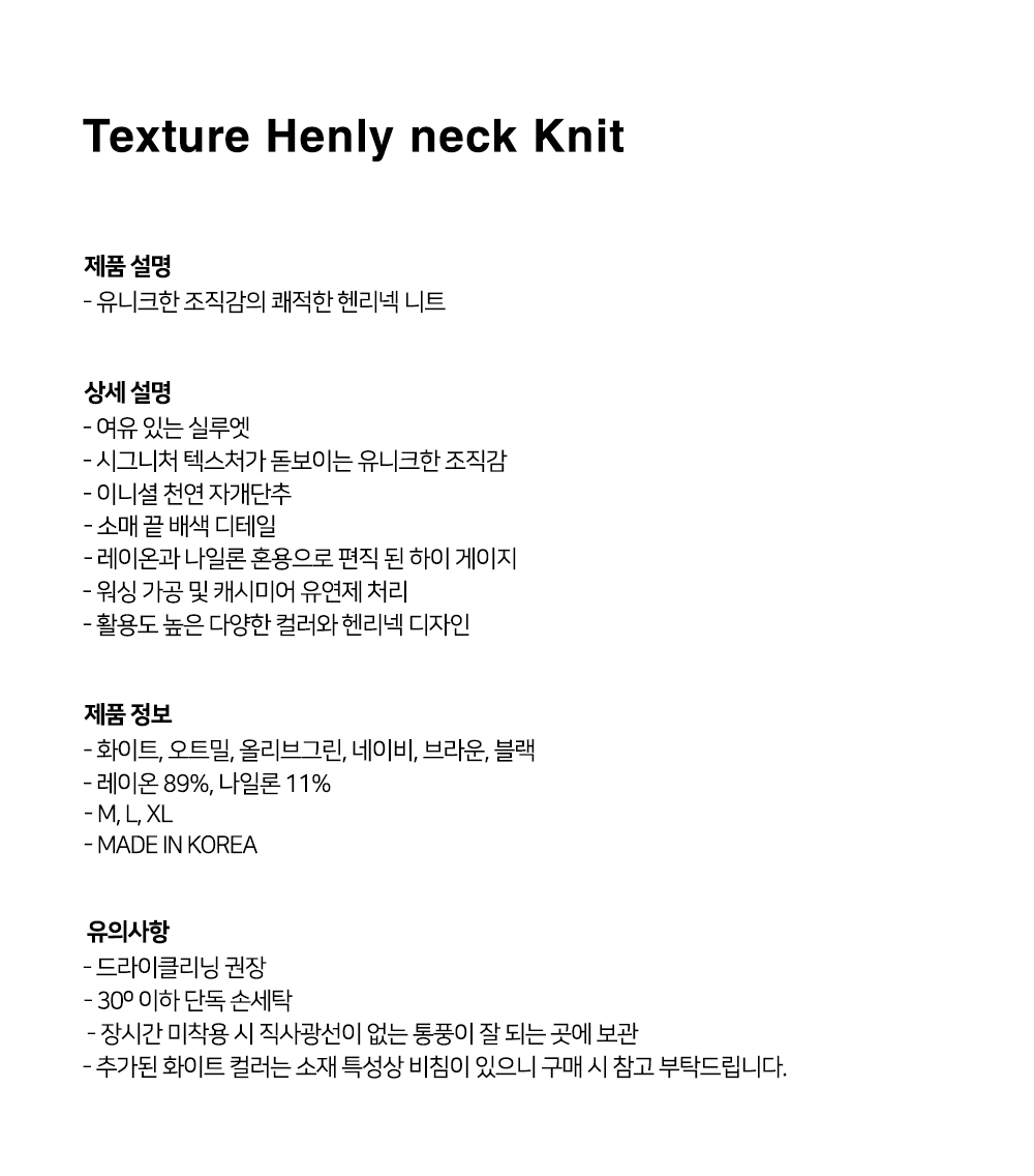 유니크한 조직감의 쾌적한 헨리넥 니트