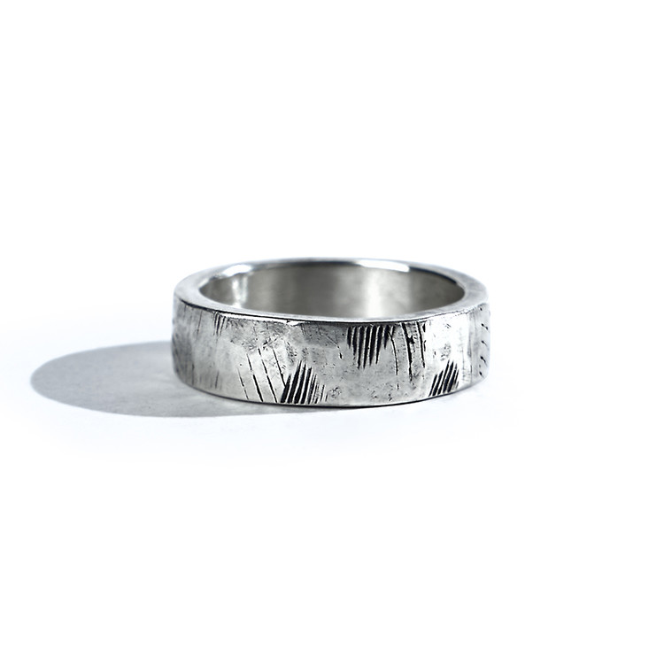 스크래치 가공과 해머드 가공이 같이 들어가있는 디자인으로 하나하나 제작할 때마다 가공하기 때문에 스크래치와 해머드 가공이 동일하지 않으며, 개체 차이가 조금씩 있을 수 있습니다. 얇지않고 어느정도 두께가 있어서 하나로도 포인트되며, 레이어드 착용시도 궁합이 좋습니다.