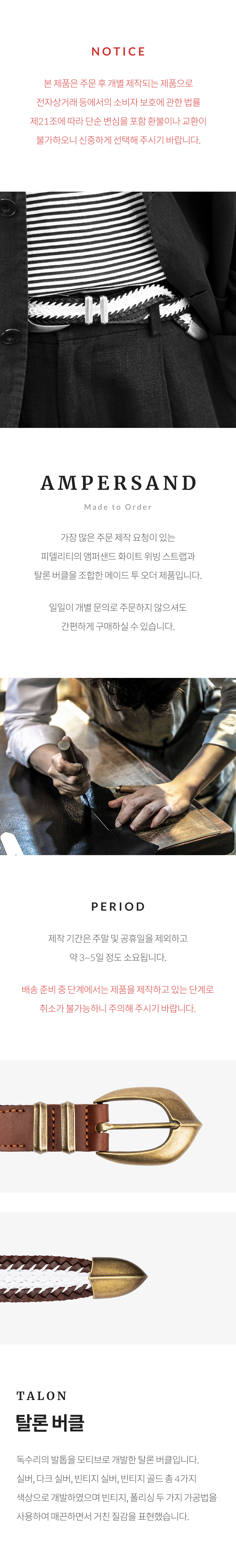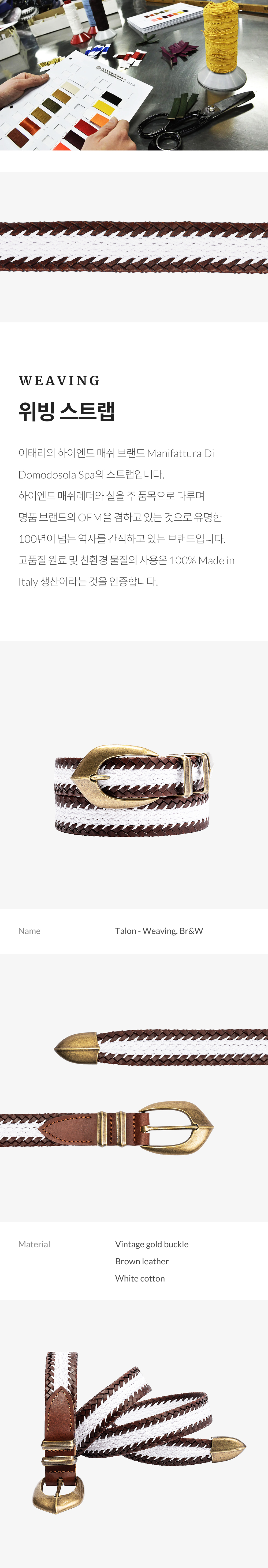 빈티지, 폴리싱 두 가지 가공법을 사용하여 독수리 발톱을 표현한 Talon 버클과 이태리 하이엔드 가죽 브랜드 Manifattura di domodossola spa의 가죽과 면실을 꼬아 제작된 위빙 스트랩