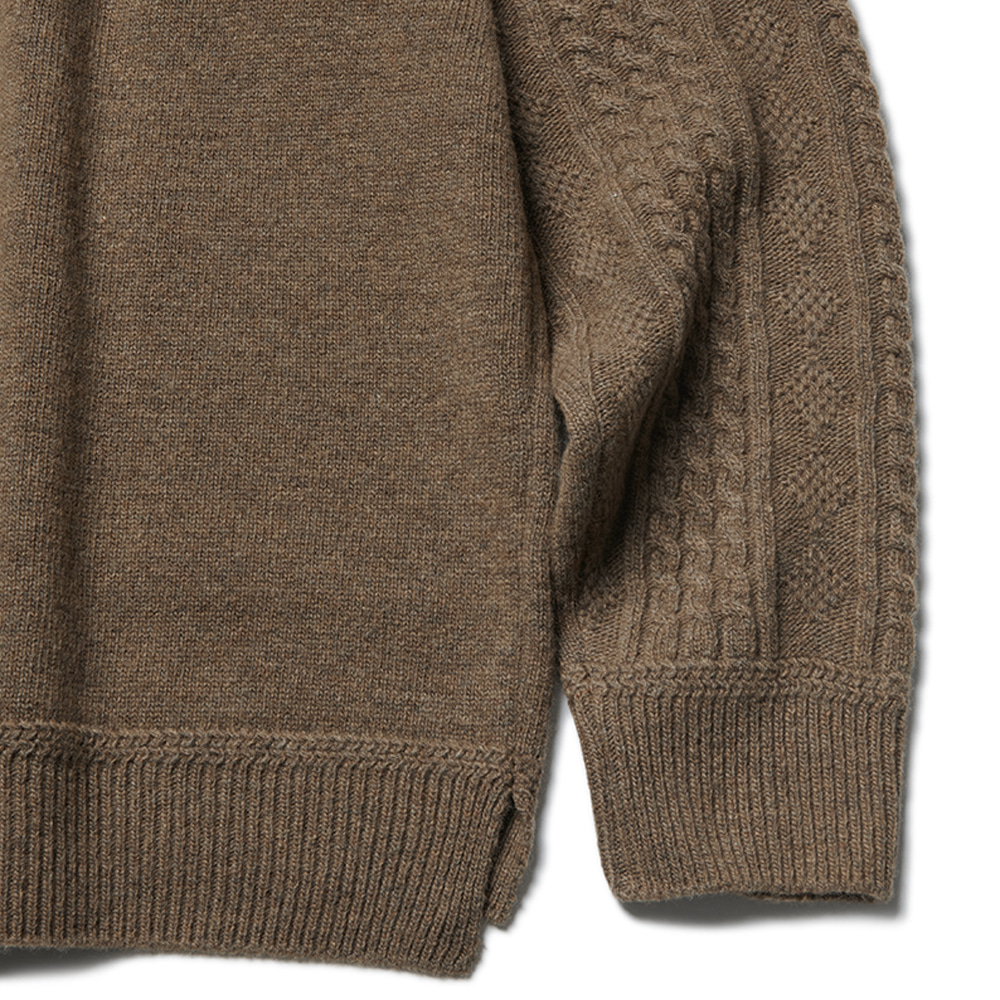 - A design with different knitted patterns on the sleeves and hem