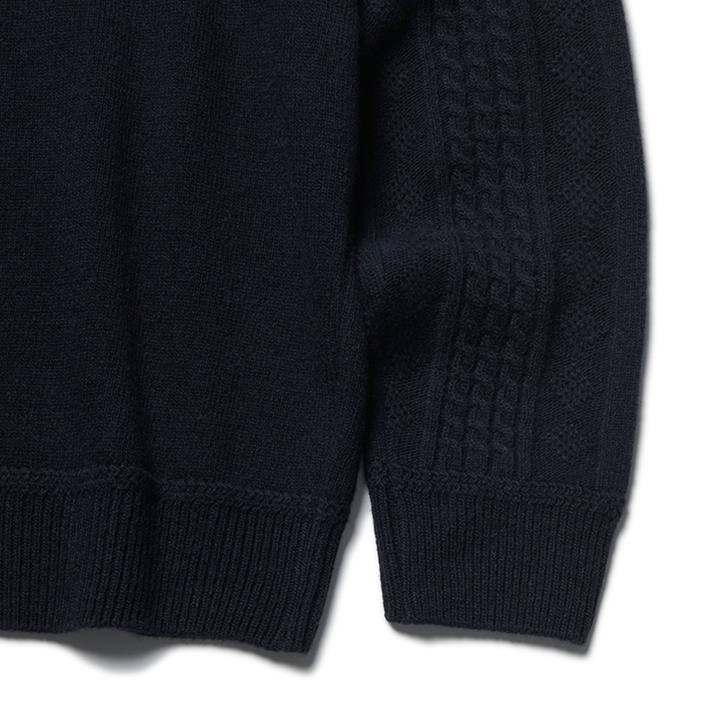 - 소매와 밑단의 편직패턴 디테일을 달리하여 디자인