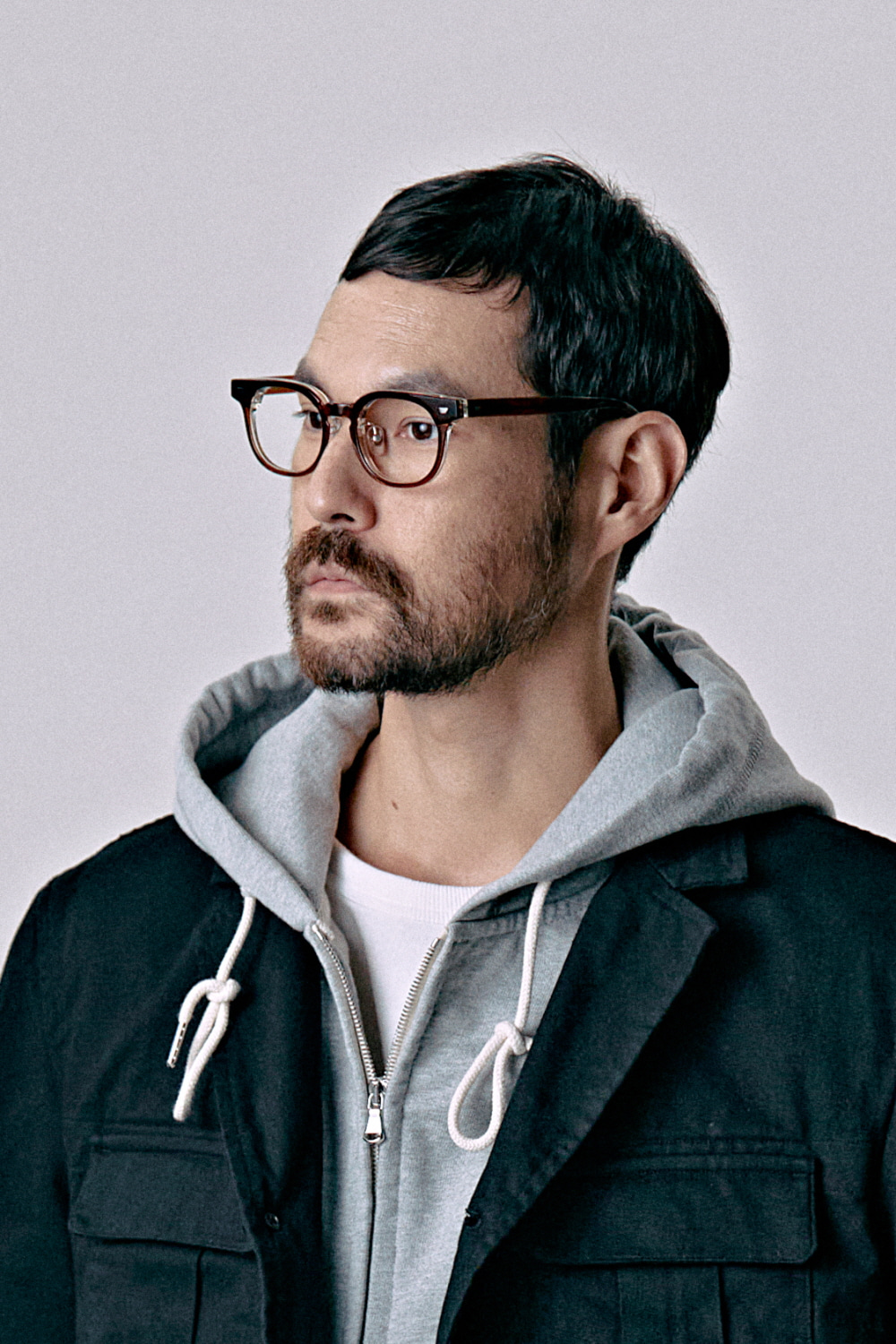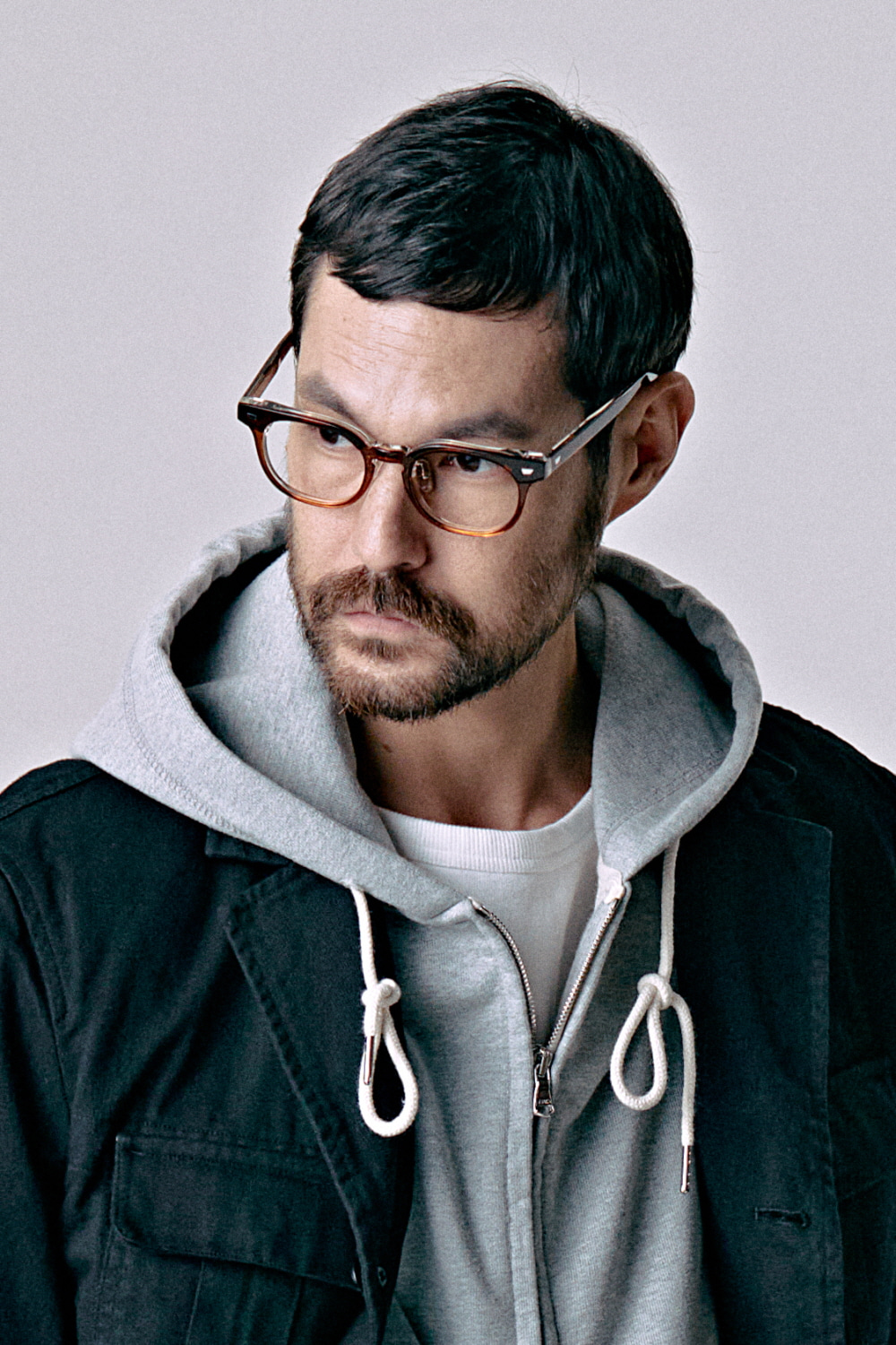 묵직한 두께감의 레이어드 칼라 프레임