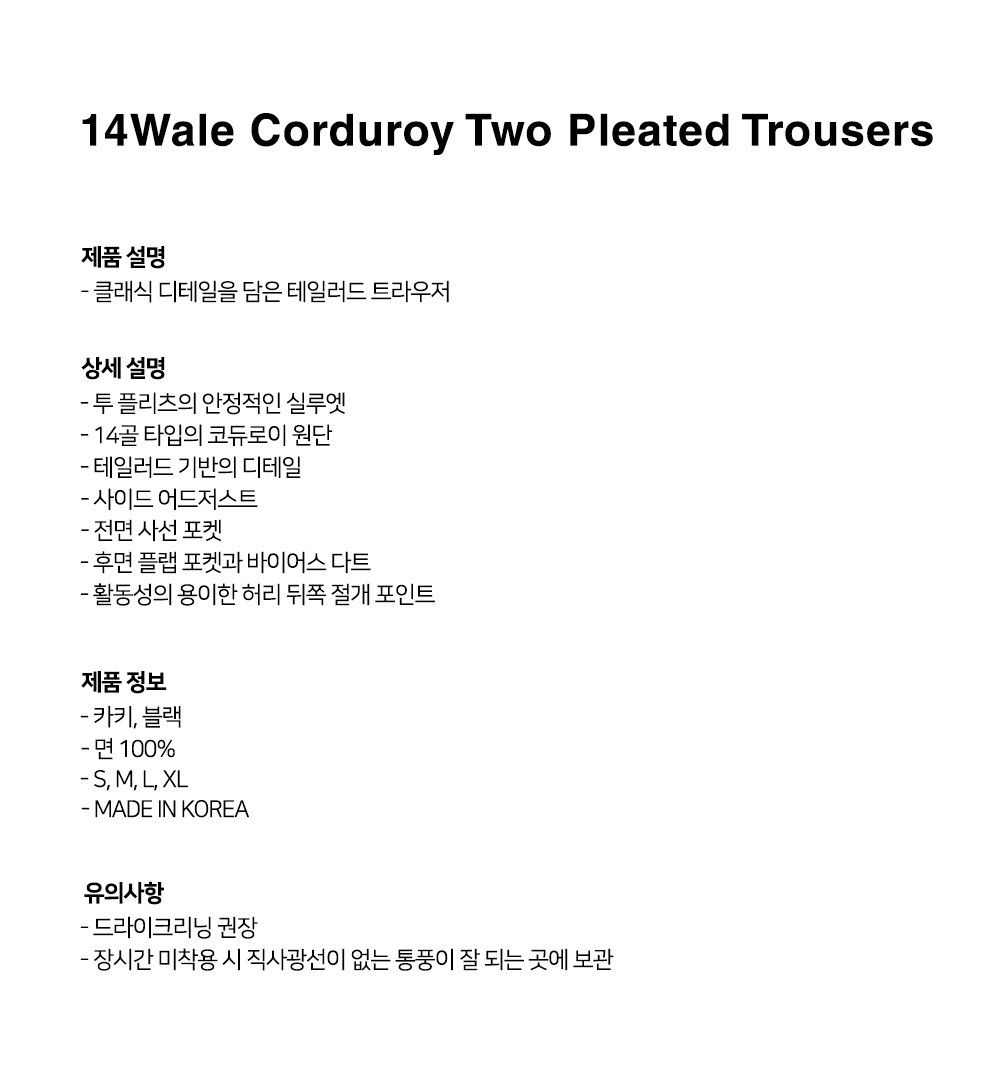 14Wale Corduroy Two Pleated Trousers (Khaki)