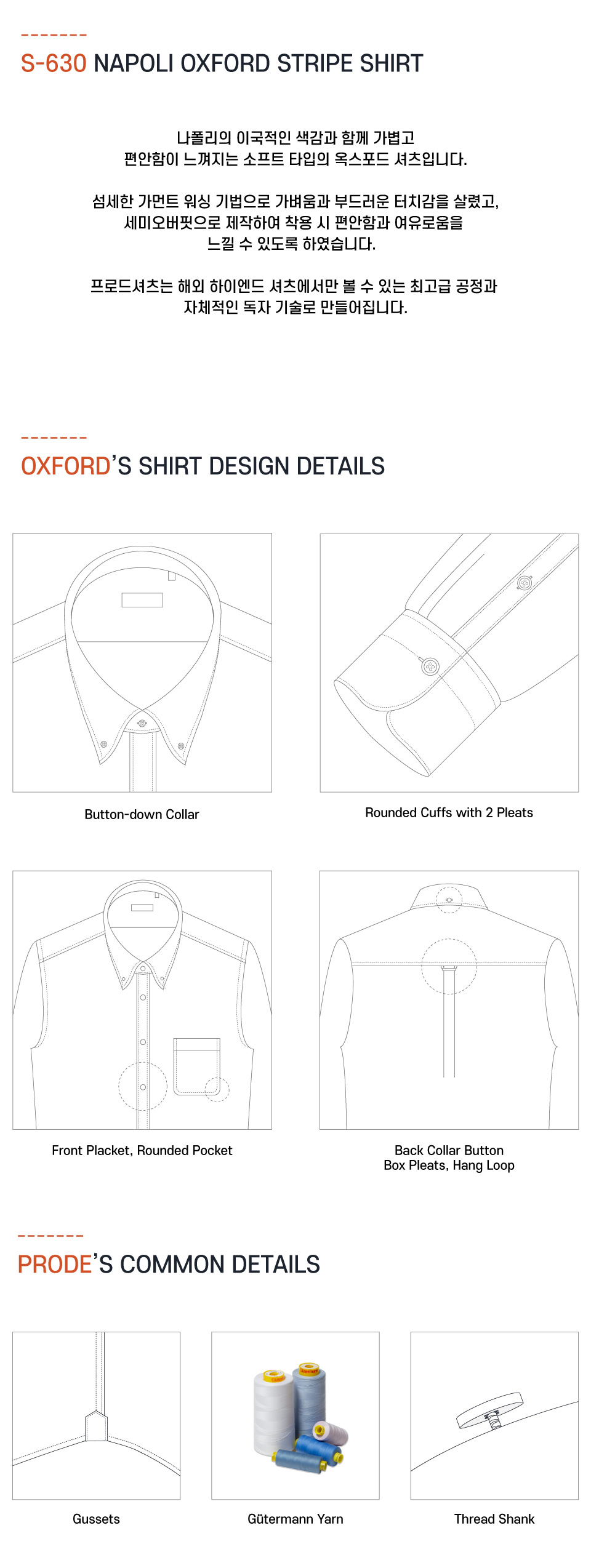 나폴리의 이국적인 색감과 함께 가볍고 편안함이 느껴지는 소프트 타입의 옥스포드 셔츠입니다. 섬세한 가먼트 워싱 기법으로 가벼움과 부드러운 터치감을 살렸고, 세미오버핏으로 제작하여 착용 시 편안함과 여유로움을 느낄 수 있도록 하였습니다. 프로드셔츠는 해외 하이엔드 셔츠에서만 볼 수 있는 최고급 공정과 자체적은 독자 기술로 만들어집니다.