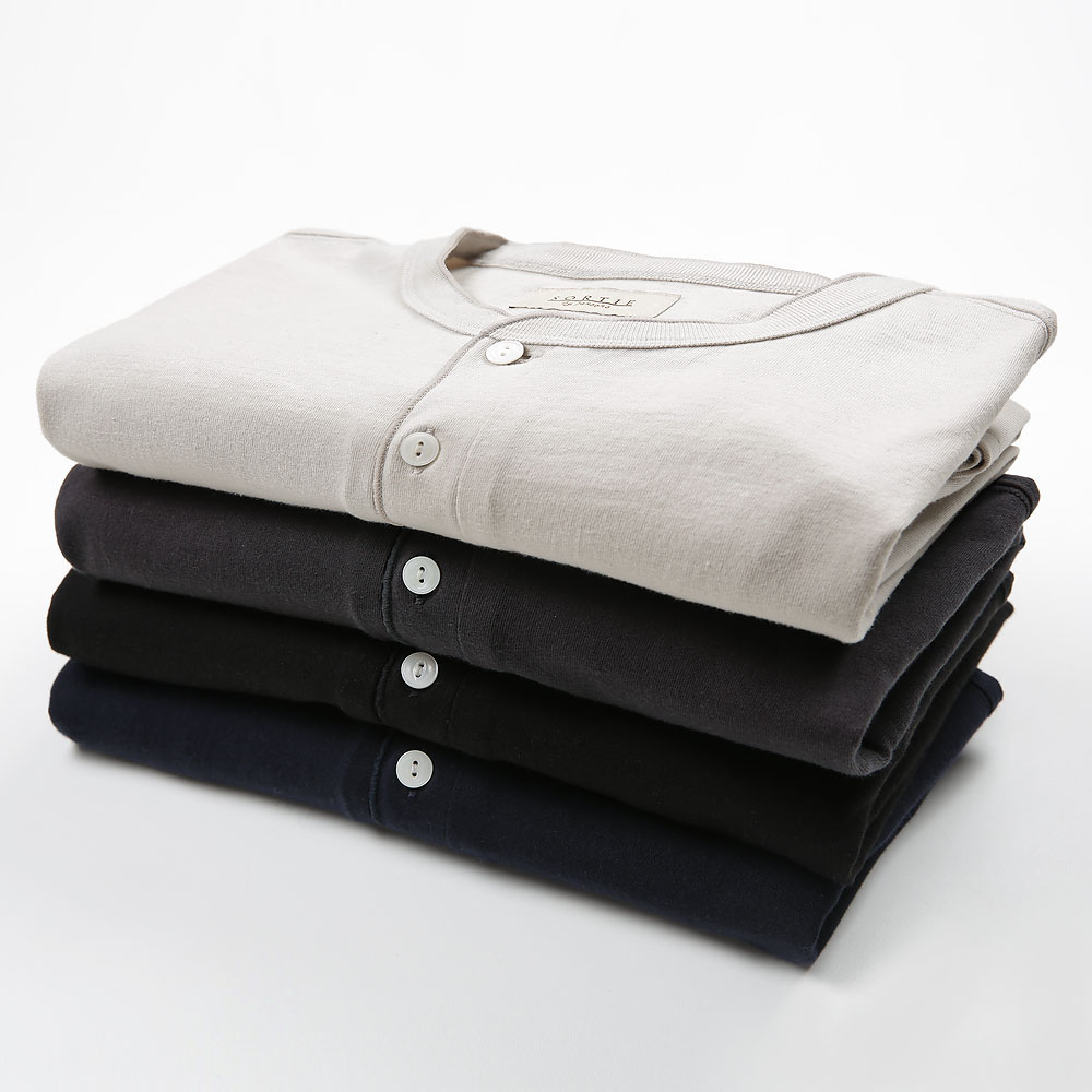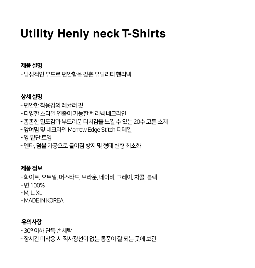남성적인 무드로 편안함을 갖춘 유틸리티 헨리넥