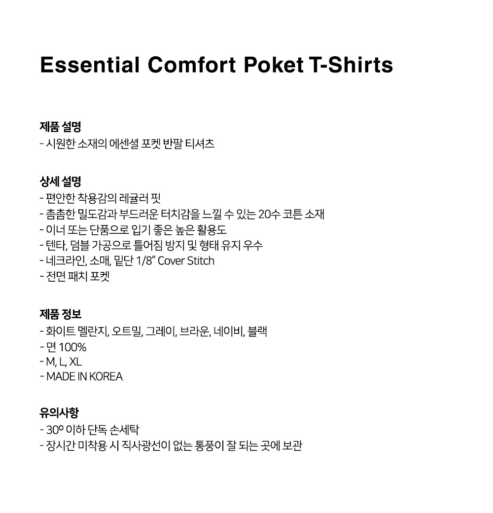 시원한 소재의 에센셜 포켓 반팔 티셔츠
