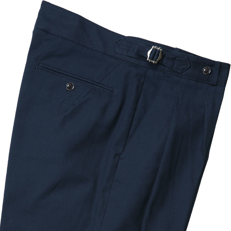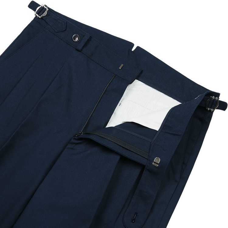 테일러드 기반의 디테일을 갖춘 워시드 코튼 트라우저