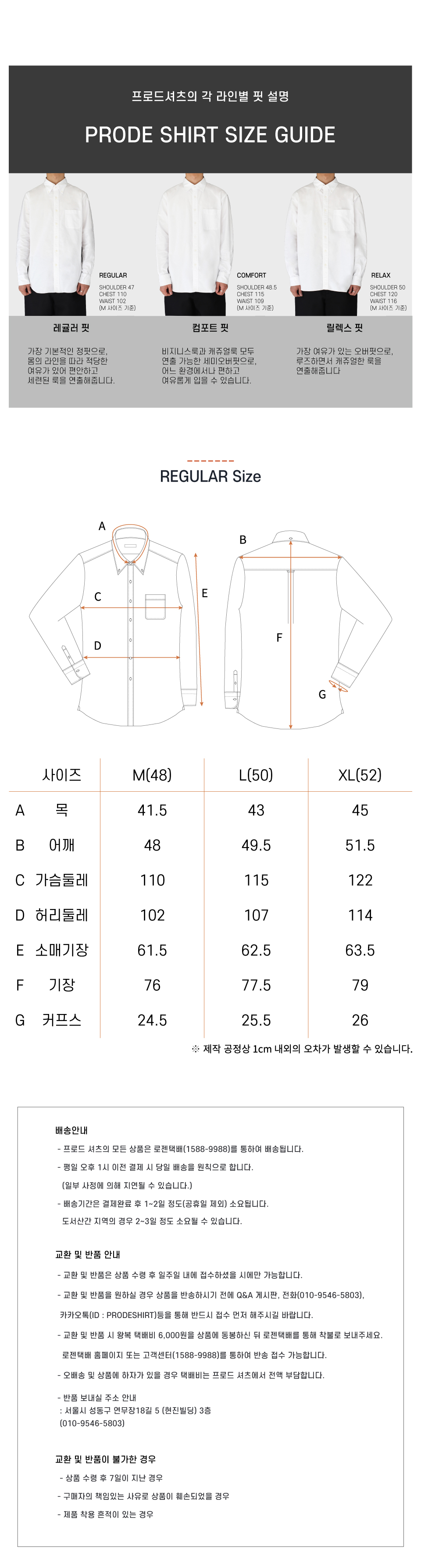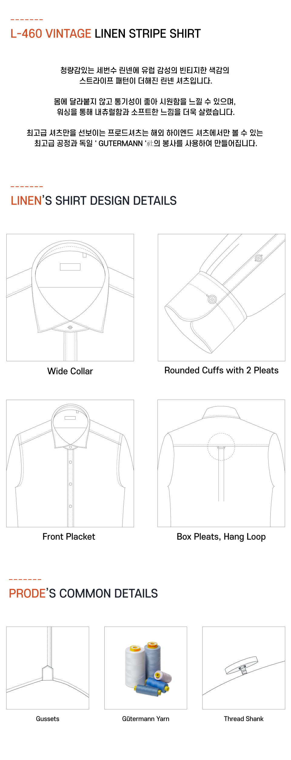 최고급 셔츠만을 선보이는 프로드셔츠는 해외 하이엔드 셔츠에서만 볼 수 있는 최고급 공정과 독일 'GUTERMANN' 社의 봉사를 사용하여 만들어집니다.
