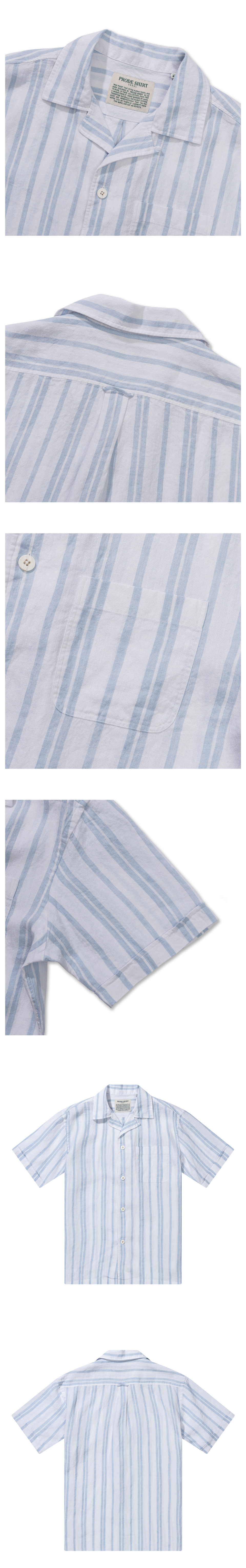 감각적인 멀티 스트라이프 패턴의 린넨 소재에 시원한 느낌의 오픈 카라가 더해져 세련되면서도 청량감이 느껴지는 반팔 셔츠 입니다.