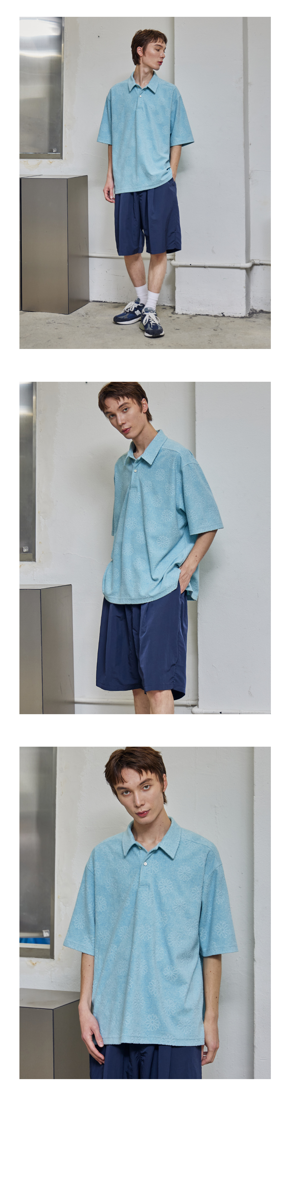 FLOWER TERRY COLLAR T-SHIRT (CYAN BLUE)