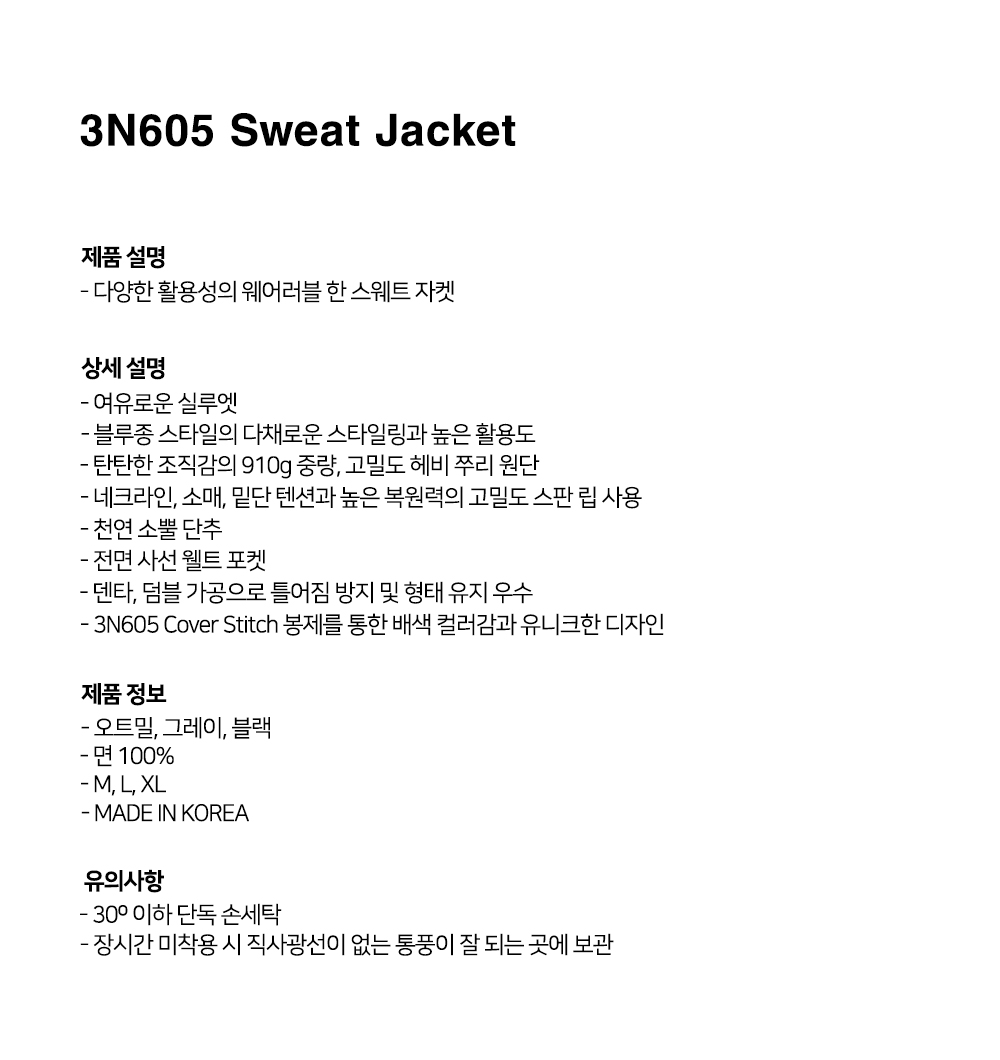 다양한 활용성의 웨어러블 한 스웨트 자켓
