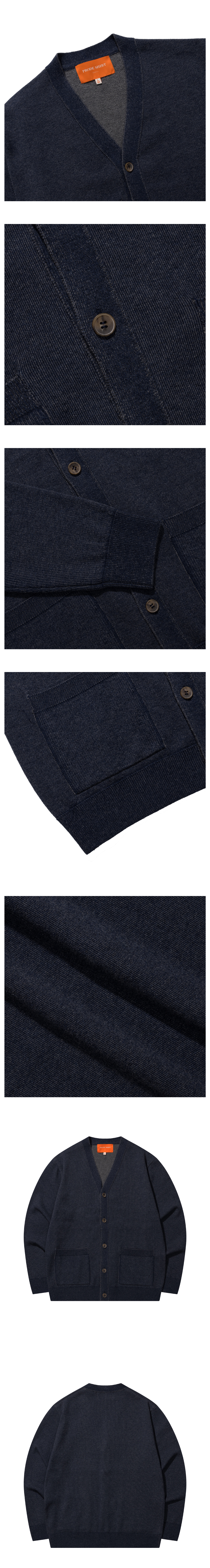 Vintage Two-Tone V-neck Cardigan (Navy)