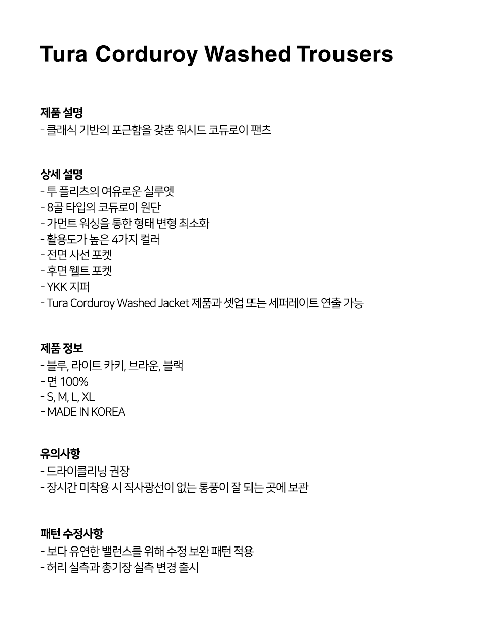 Tura Corduroy Washed Jacket 및 Tura Corduroy Washed Trousers 의 SET 제품