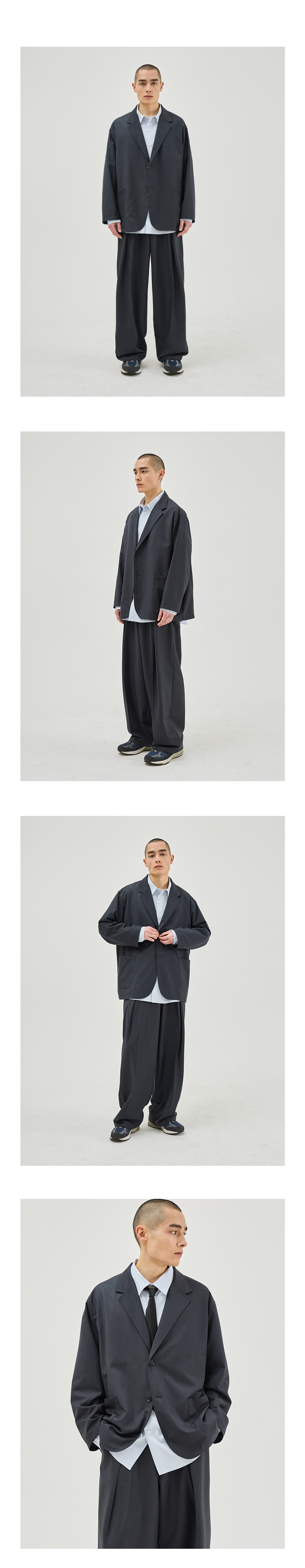 뒤판 트임 디테일로 착용감을 고려하였으며, 무겁지 않은 디자인으로 다양한 팬츠류와 착용하시기 좋은 자켓입니다.