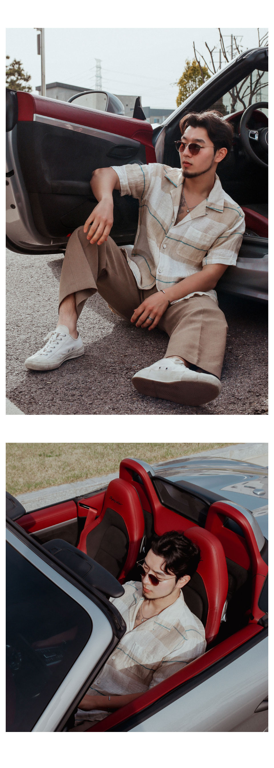 감각적인 멀티 스트라이프 패턴의 린넨 소재에 시원한 느낌의 오픈 카라가 더해져 세련되면서도 청량감이 느껴지는 반팔 셔츠입니다.