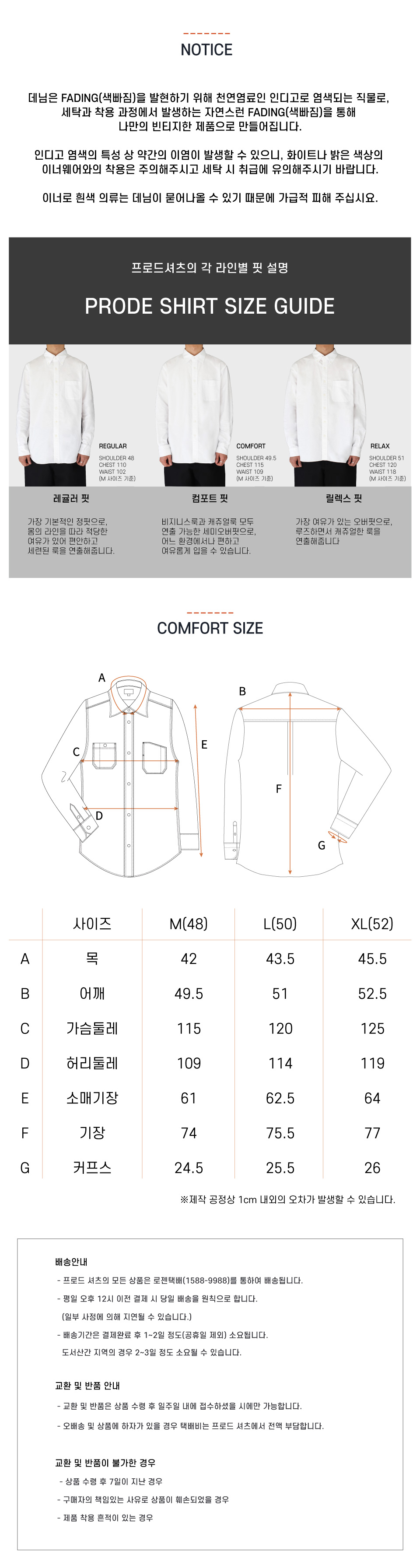 내추럴한 데님 원단에 1930년대 워크 셔츠 스타일을 재해석하여 접목한 DENIM 셔츠입니다.