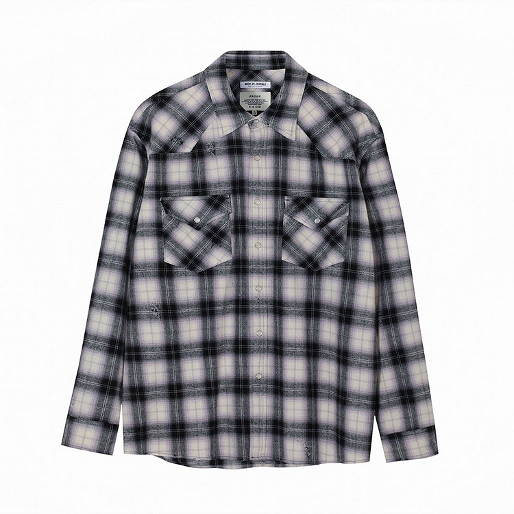 프로드셔츠와 맨인정글의 콜라보로 선보이는 웨스턴 스타일의 옴브레 체크 셔츠입니다.