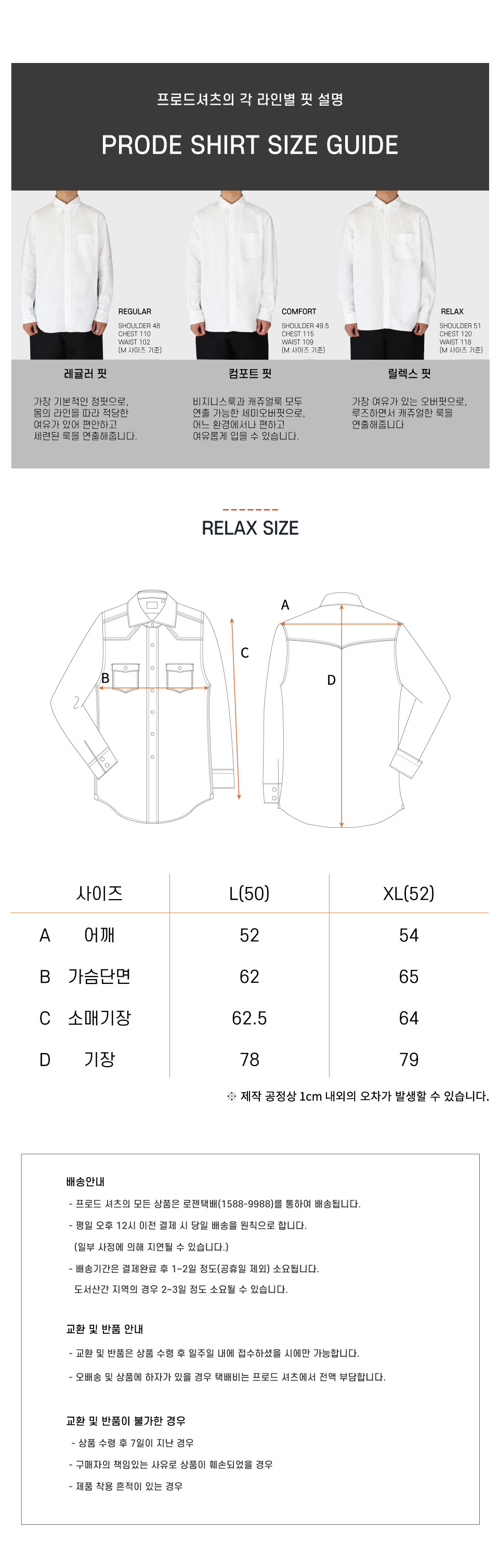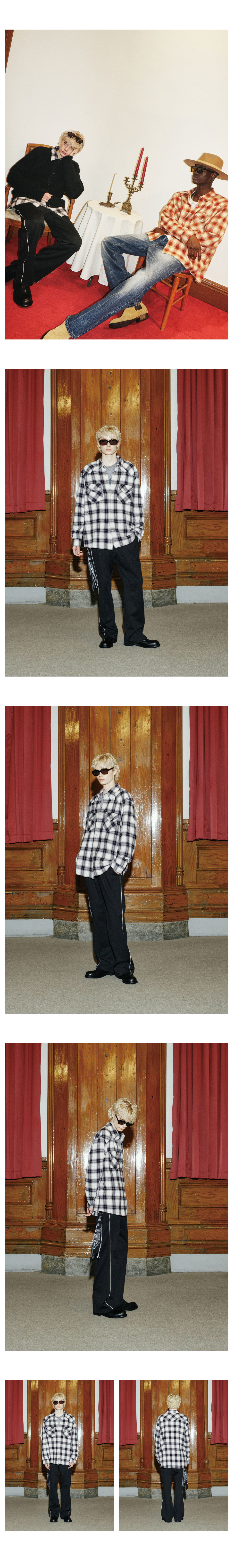매력적인 색감의 옴브레 체크 원단을 웨스턴 스타일로 풀어 레트로하면서도 모던한 느낌이 나며, 부분적으로 대미지 작업을 하여 빈티지함을 더욱 살렸습니다.