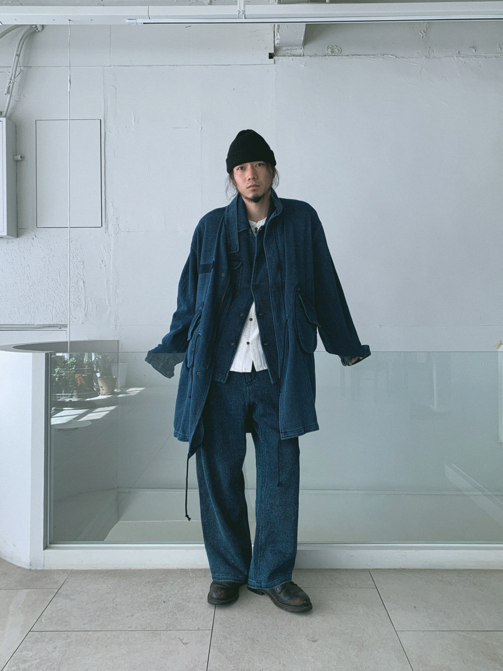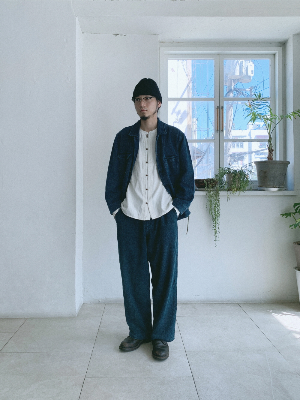 사시코 방직과 더불어 천연 인디고 염색을 활용 한 워크 팬츠
