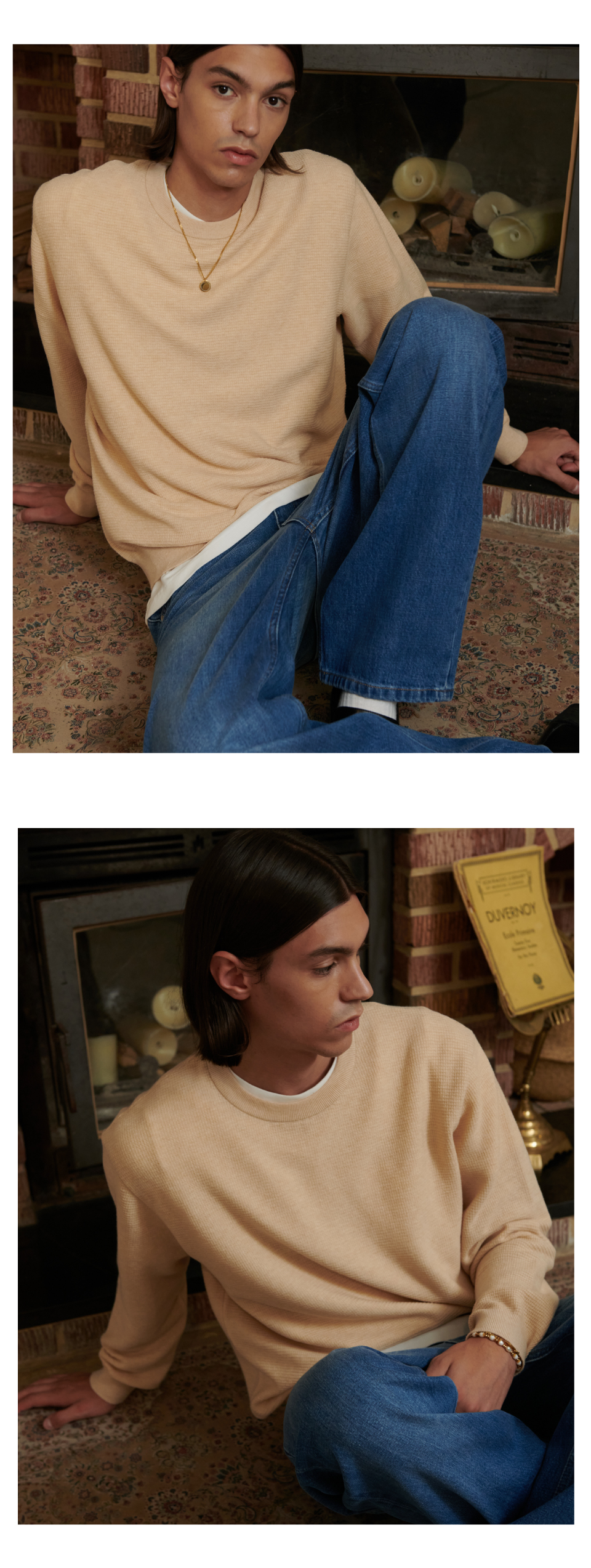 볼륨감 있는 피케 조직으로 편직 되어 보온성이 높고 탄탄한 크루넥 니트입니다.