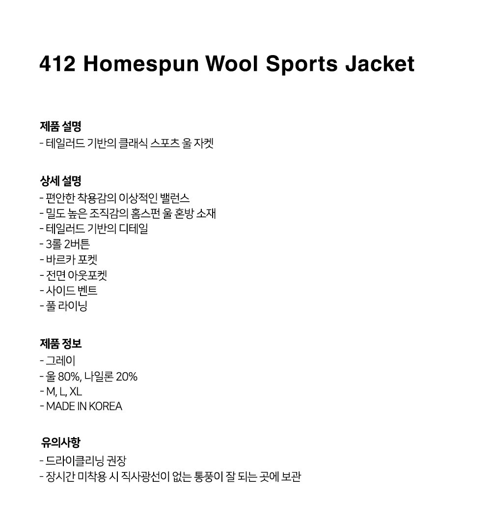 - 밀도 높은 조직감의 홈스펀 울 혼방 소재