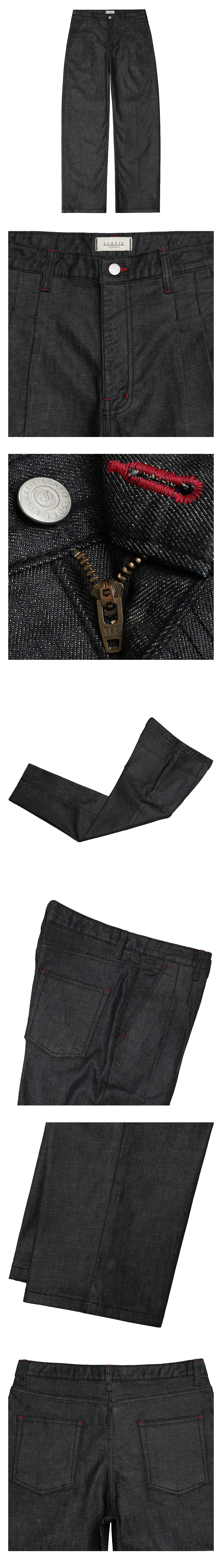 레드 포인트 컬러가 돋보이는 와이드 데님 트라우저