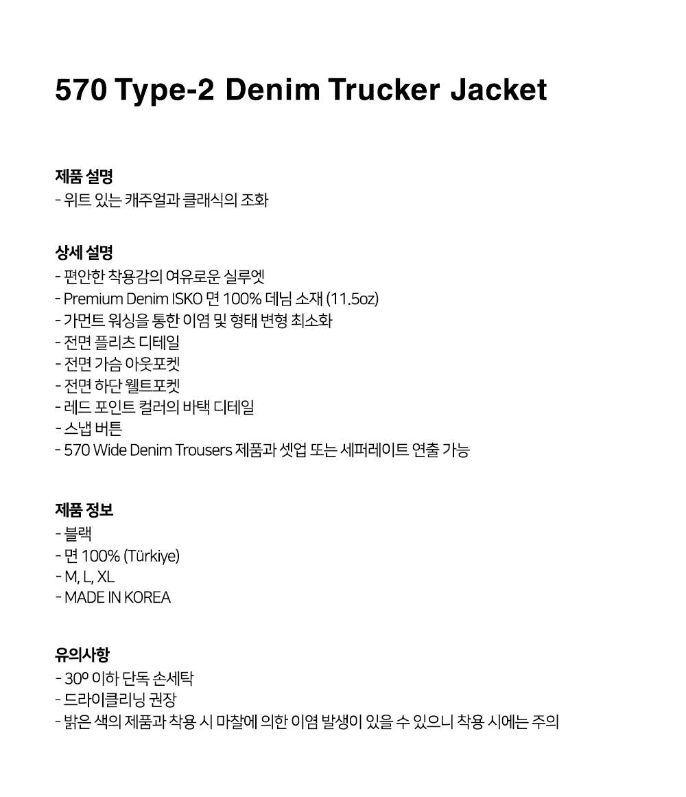 - 570 Wide Denim Trousers 제품과 셋업 또는 세퍼레이트 연출 가능