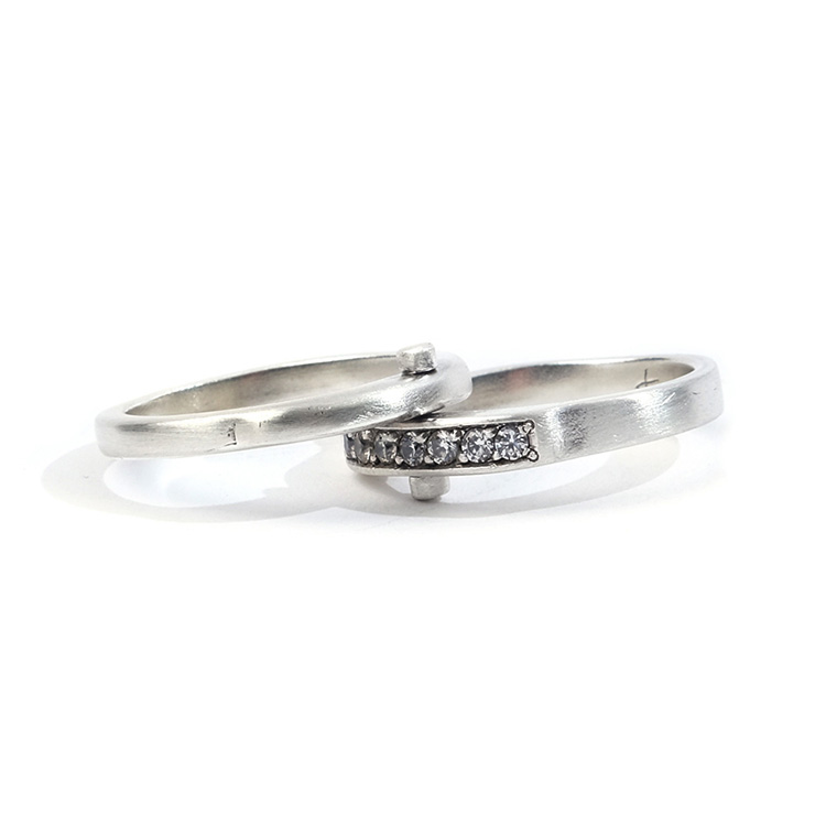 2개가 다른 TEXTURE 반지로 구성되어 있는 2 MULTIPLE RING은 가운데 지지대로 고정되어 레이어드 되어 있는 멀티 디자인입니다. RING에는 보석이 있어 고풍스럽고 엔틱한 느낌의 디자인입니다.