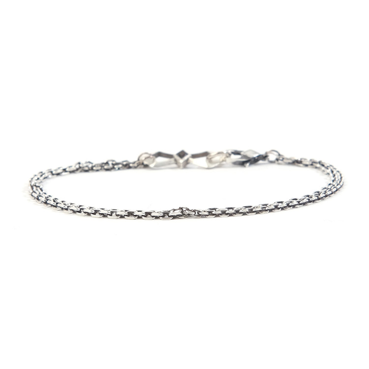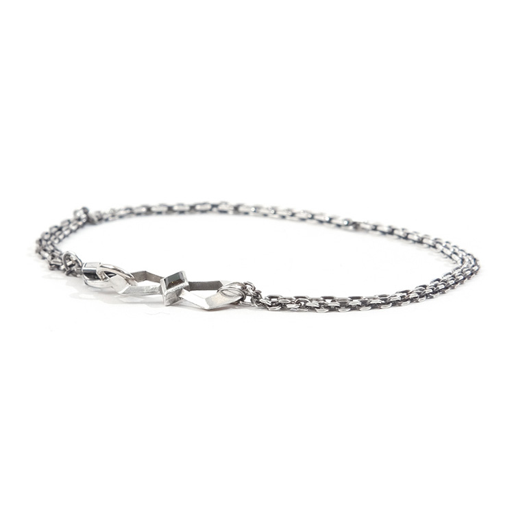 체인이 두 줄로 레이어드 된 디자인으로 자신만의 천연석을 넣어 제작이 가능한 디자인으로 자신만의 팔찌를 만들어 갈 수 있는 제품입니다.