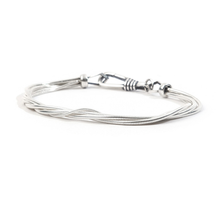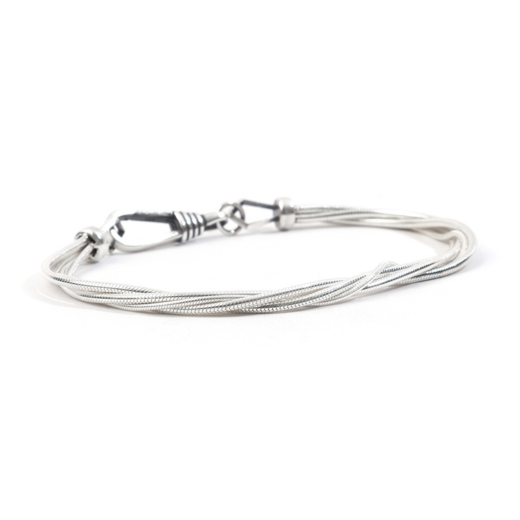 실크 스네이크 팔찌는 두꺼운 3개의 체인과 1개의 얇은 체인이 트위스트로 레이어드 되어 제작된 팔찌입니다.