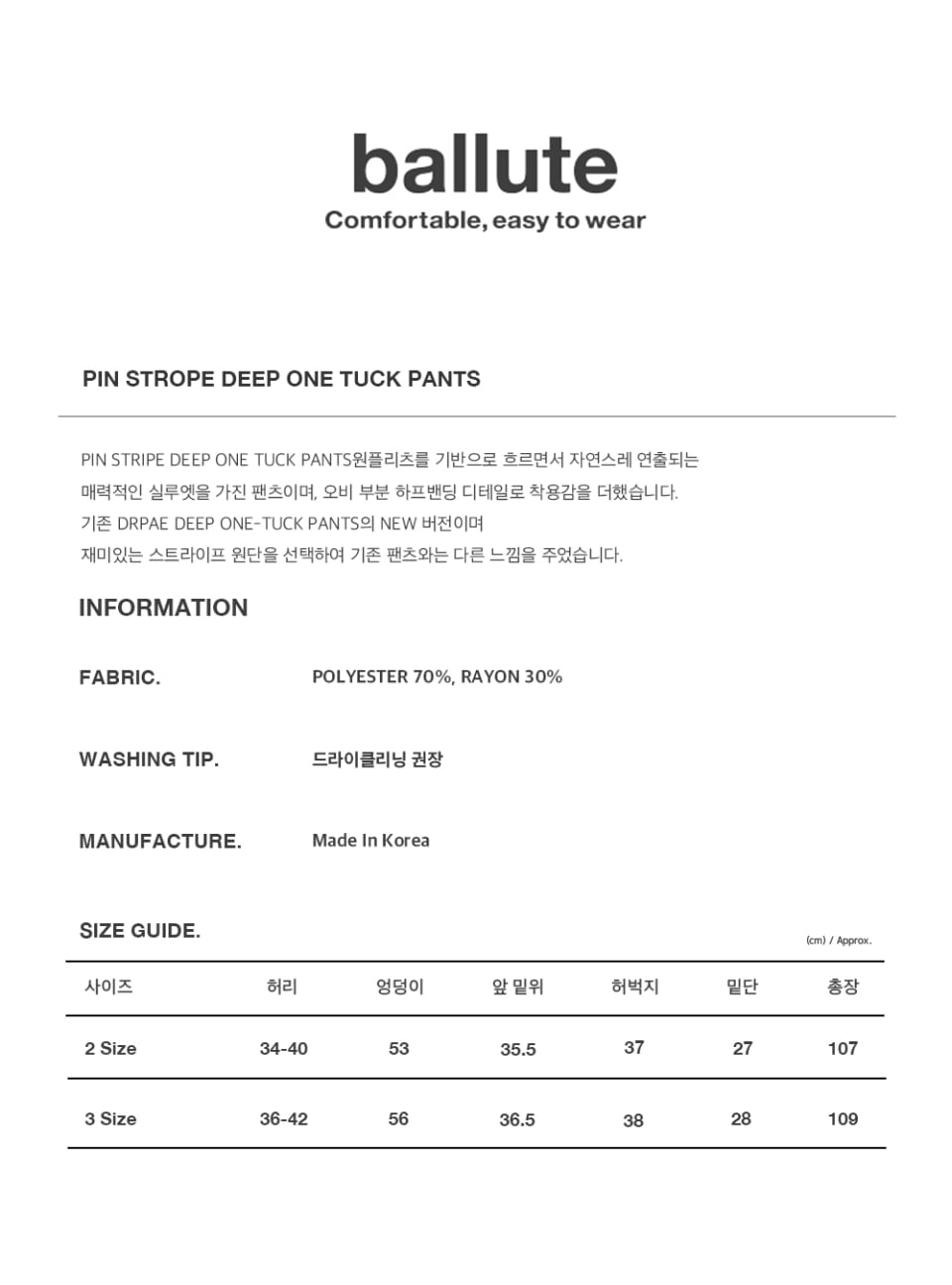 - Washing Tip : 드라이클리닝 권장