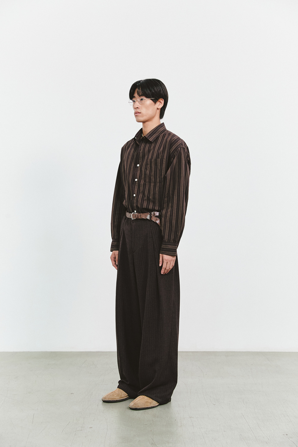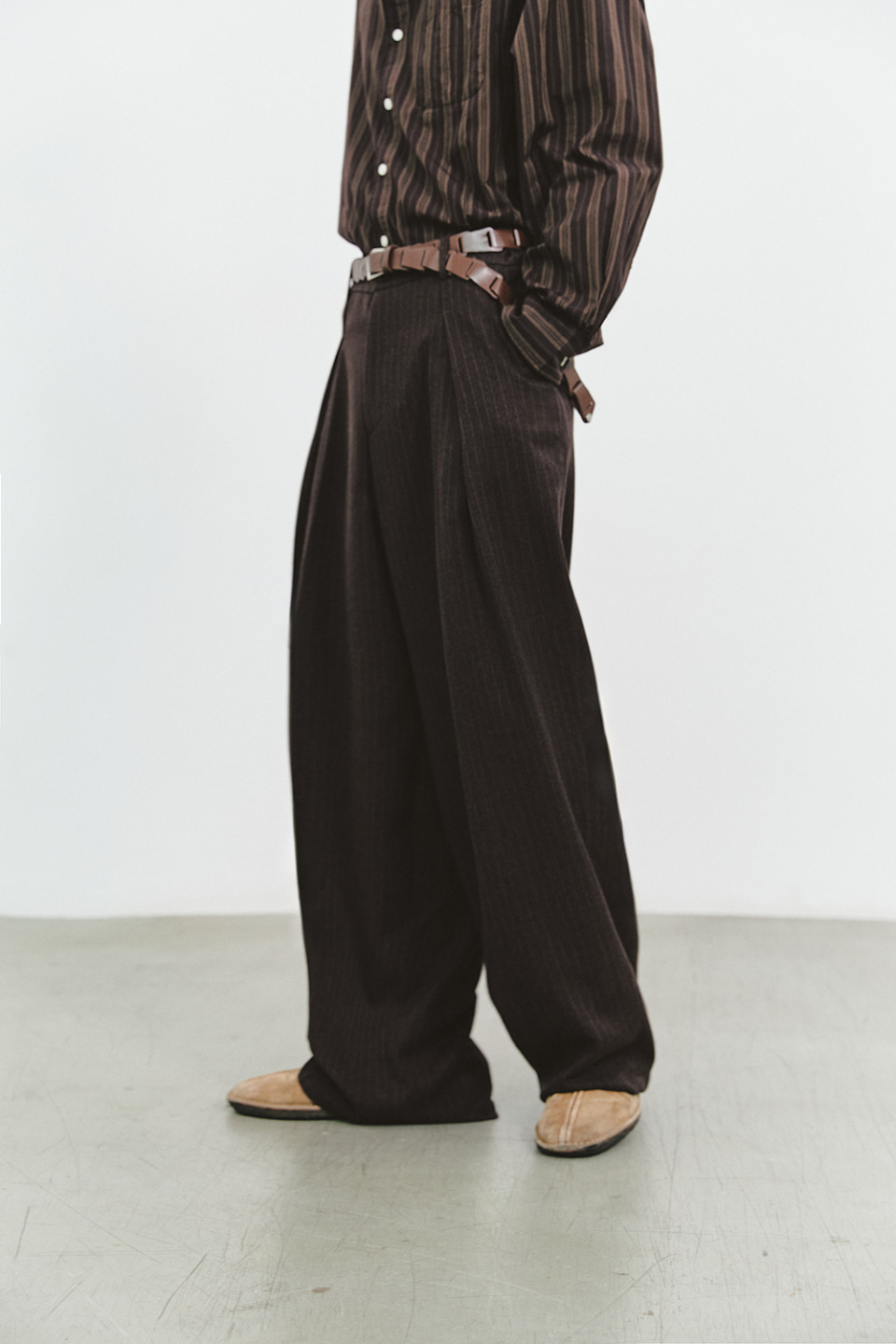 PIN STROPE DEEP ONE TUCK PANTS (BROWN)