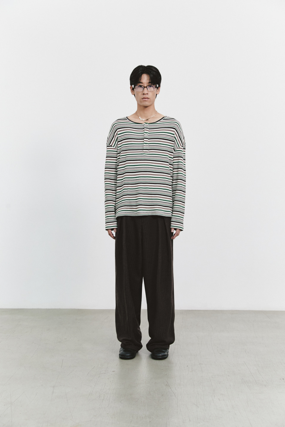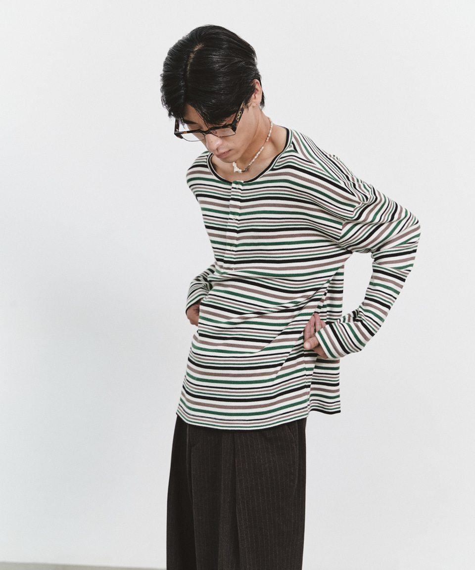 IRISH HENRYNECK STRIPE LONG SLEEVE (MULTIE GREEN)