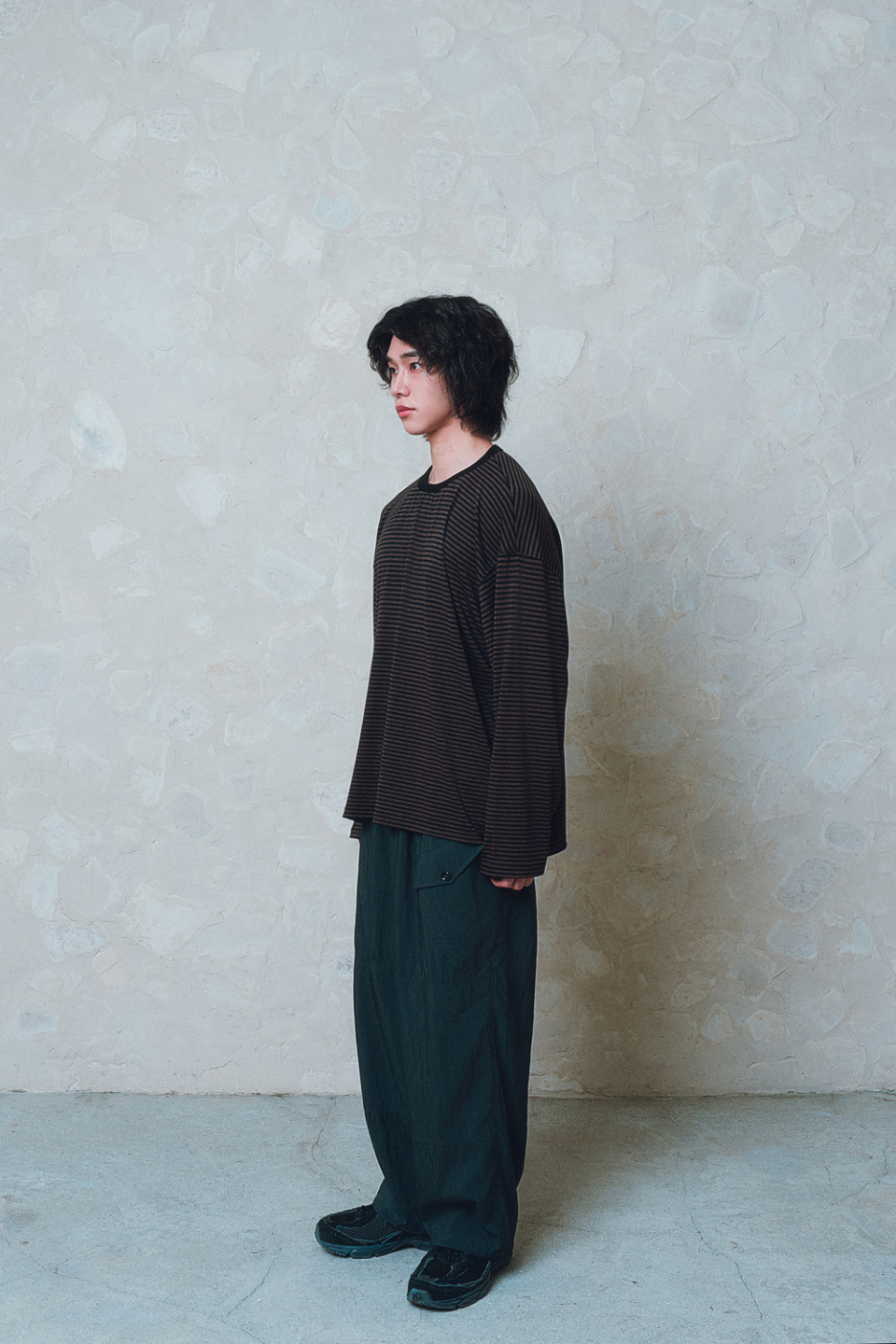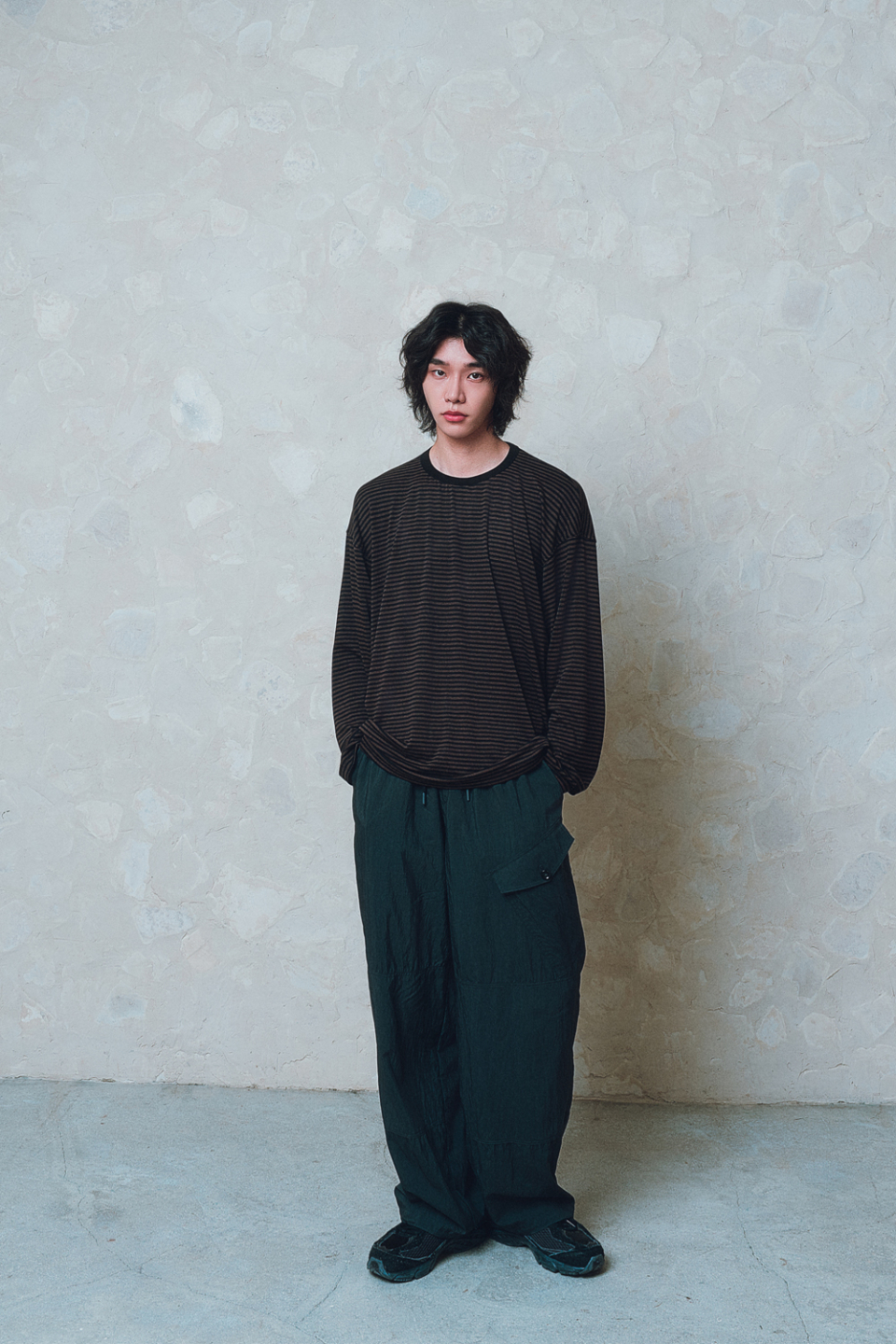 더스티 스트라이프 롱 슬리브는 다크 한 분위기의 차분한 컬러 배색으로 적당한 두께감과 폴리 레이온 스판 세 가지 원사를 혼방하여 피부에 닿았을 때 부드러우면서 편안한 착용감을 주는 티셔츠입니다.