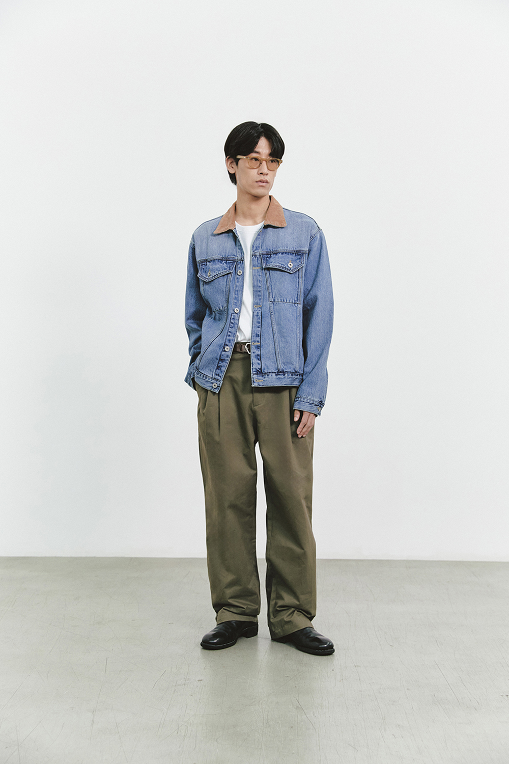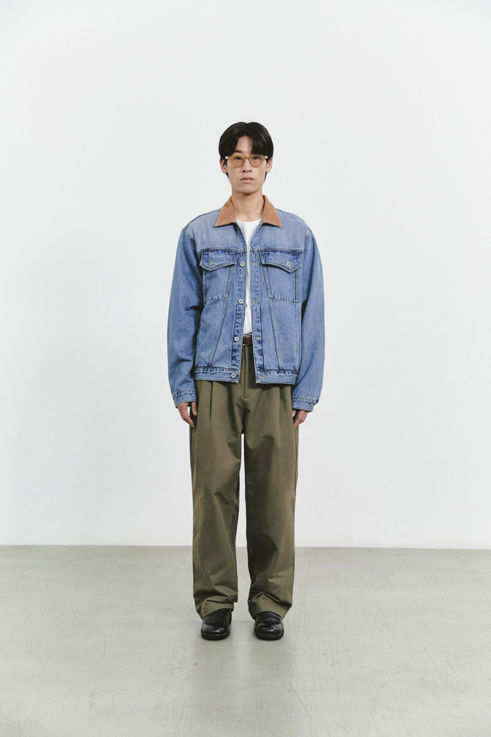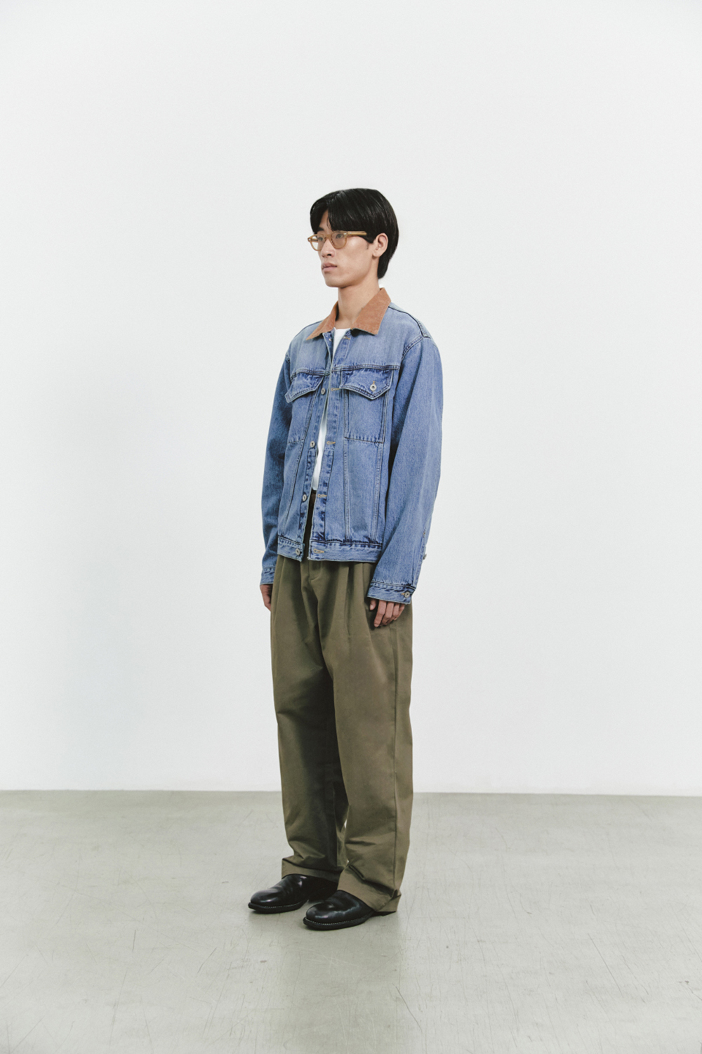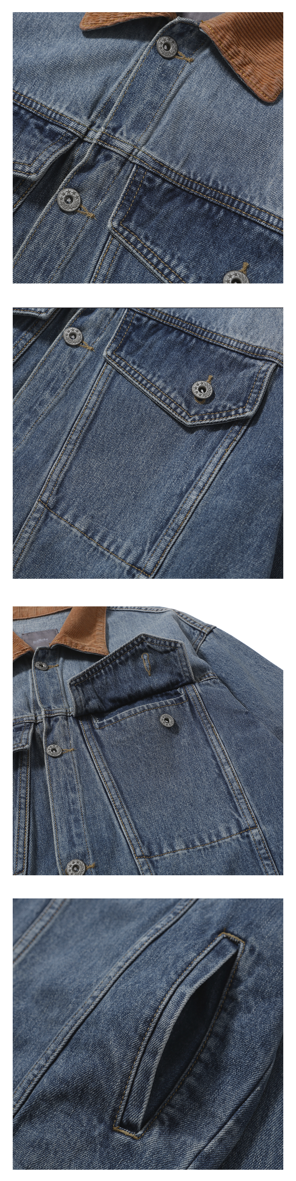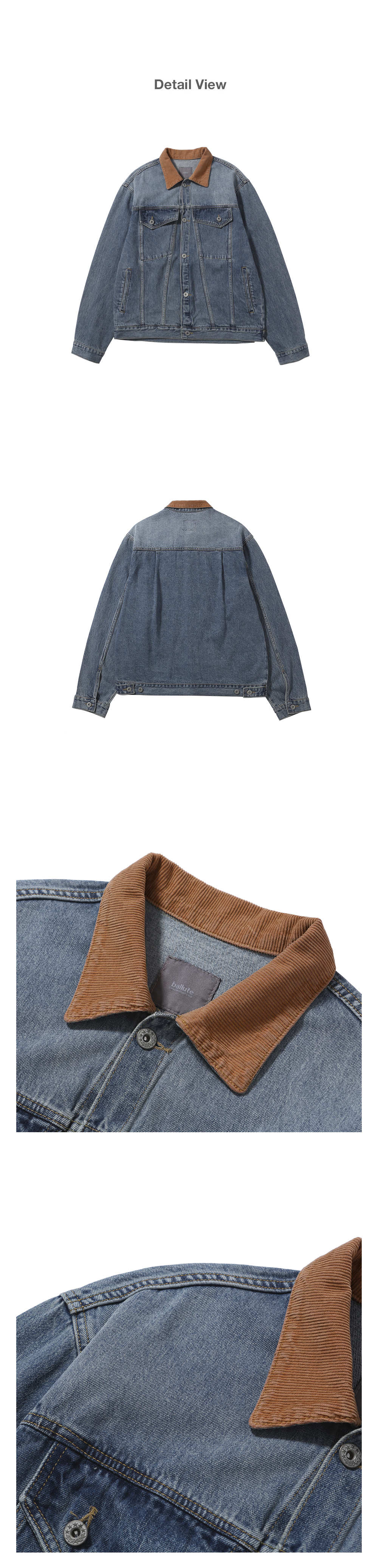자켓의 기장감과 전체적인 실루엣을 트렌디하게 풀어내었고 카라 파트를 코듀로이 소재로 변주를 주어 남성적인 무드가 한층 매력적인 아이템입니다.