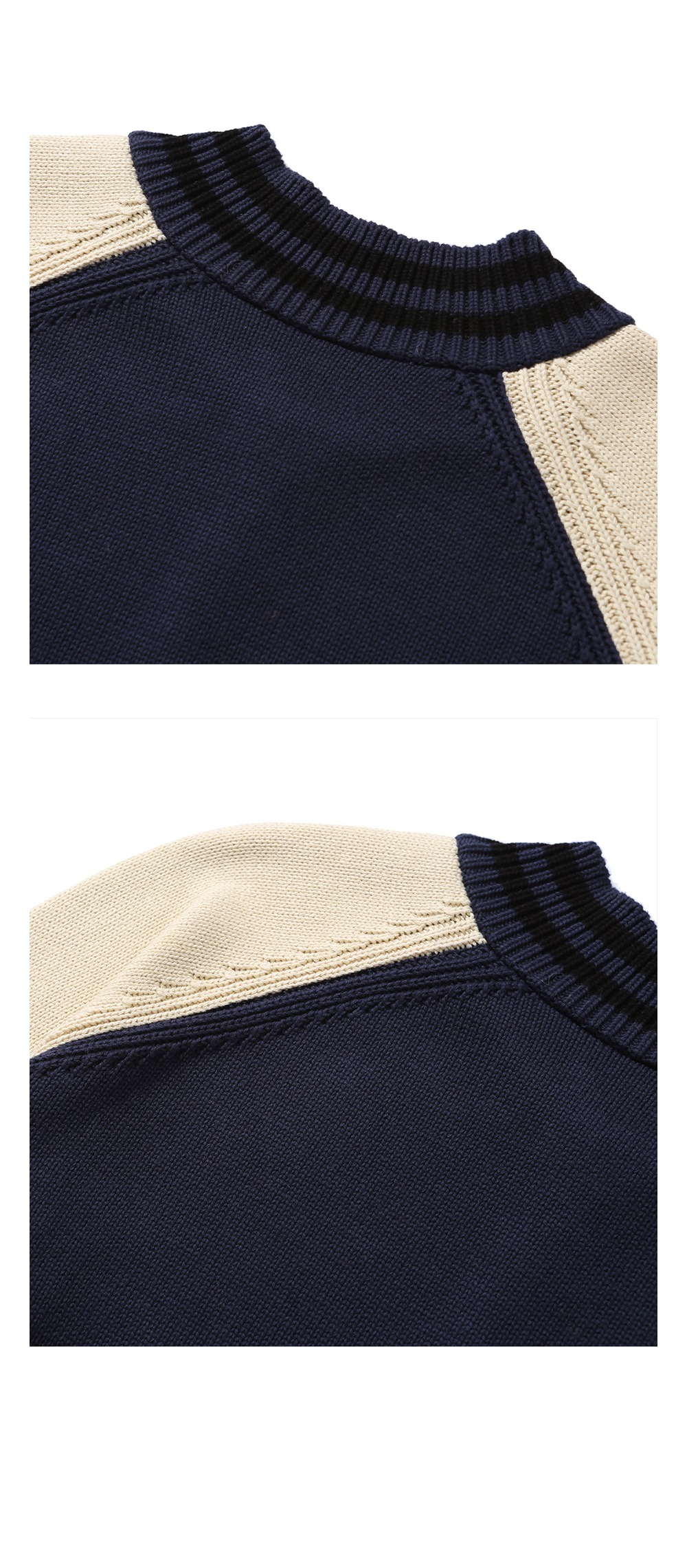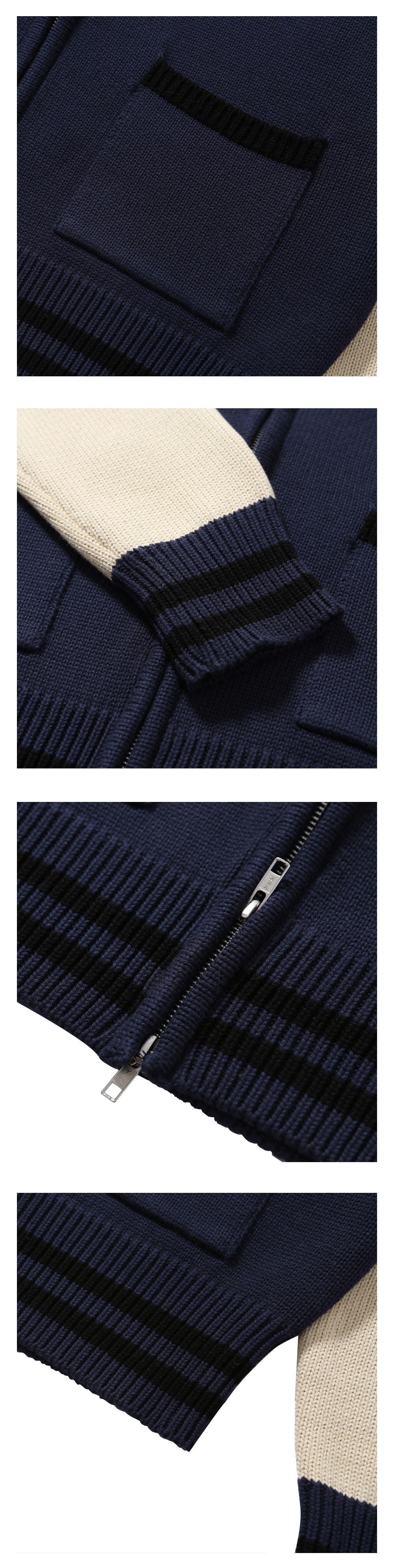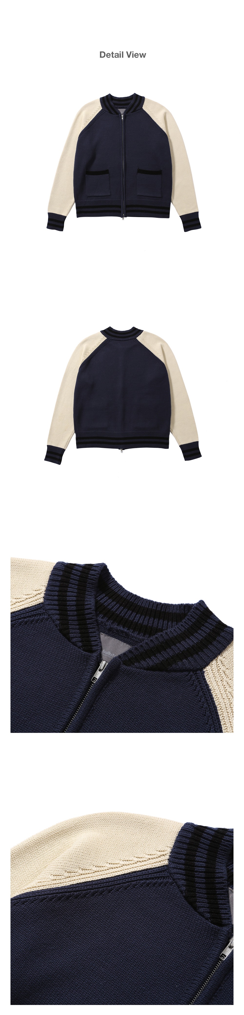 BASEBALL KNIT ZIP UP CARDIGAN (NAVY & IVORY)