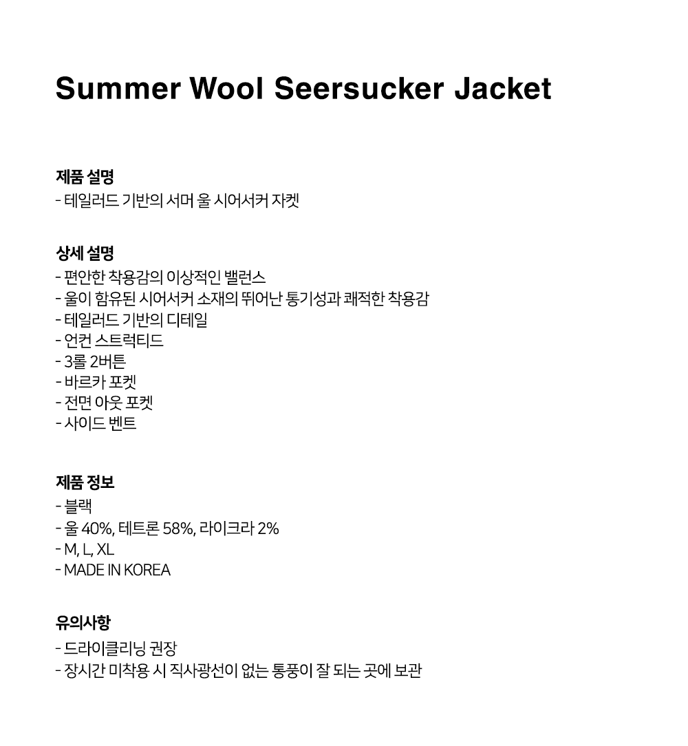 - 울이 함유된 시어서커 소재의 뛰어난 통기성과 쾌적한 착용감