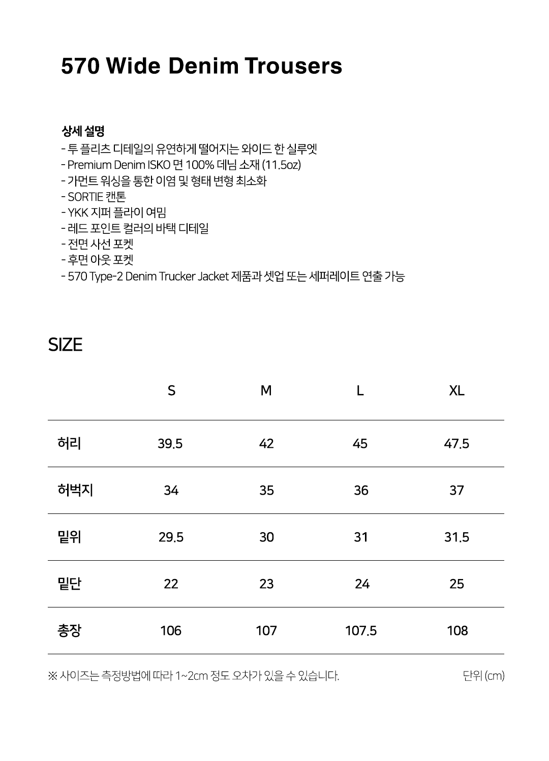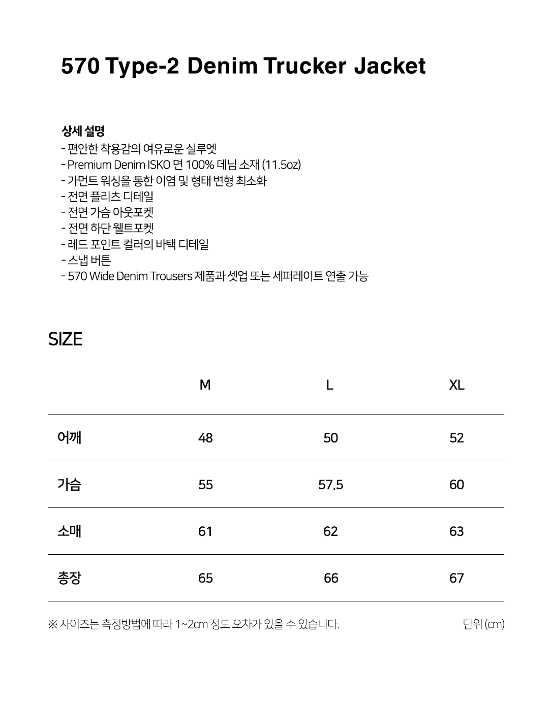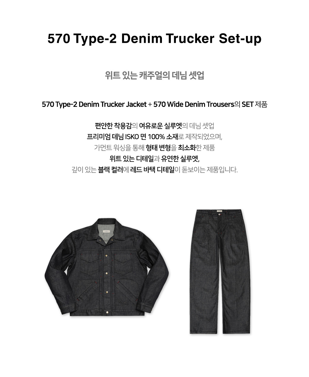 560 Type-2 Denim Trucker Jacket + 560 Wide Denim Trousers의 SET 제품