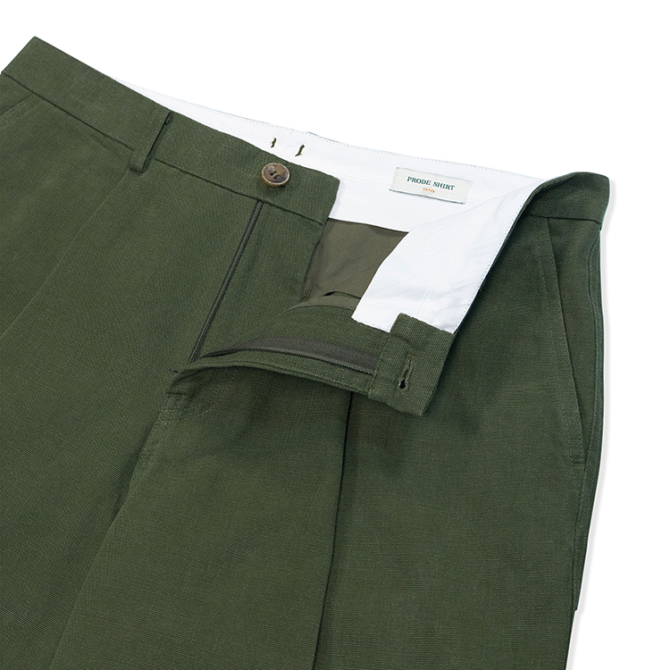 Vintage Cotton Oxford One-Tuck Pants (Olive)