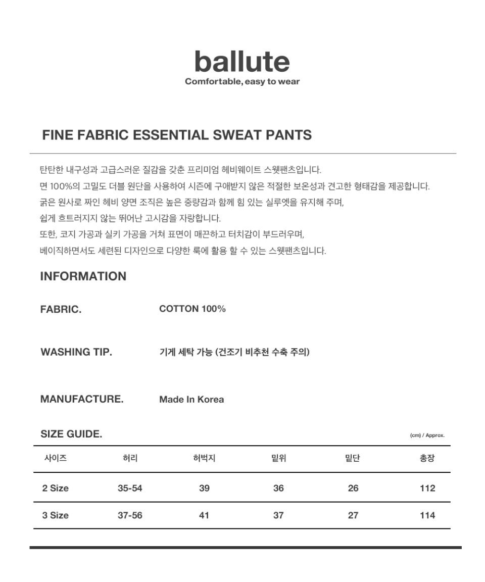 탄탄한 내구성과 고급스러운 질감을 갖춘 프리미엄 헤비 웨이트 스웻팬츠입니다.