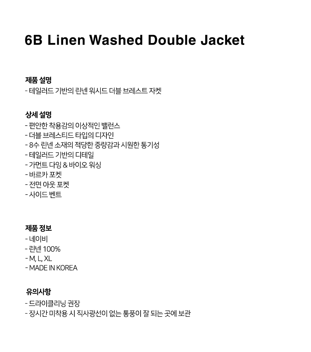 테일러드 기반의 린넨 워시드 더블 브레스트 자켓