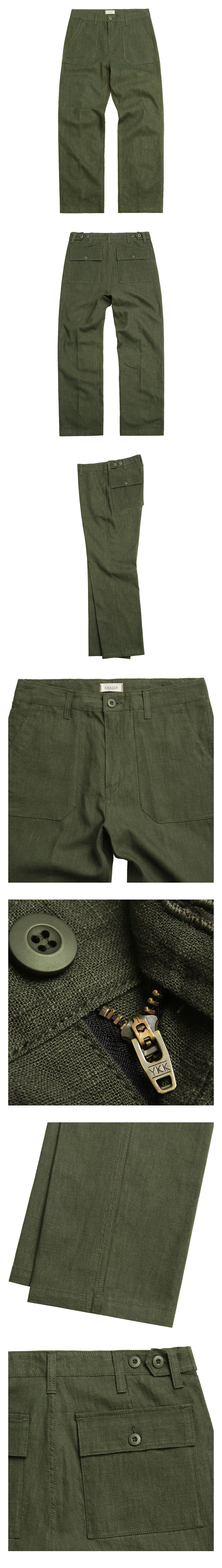 러프한 무드가 매력적인 여유로운 실루엣의 린넨 퍼티그 팬츠