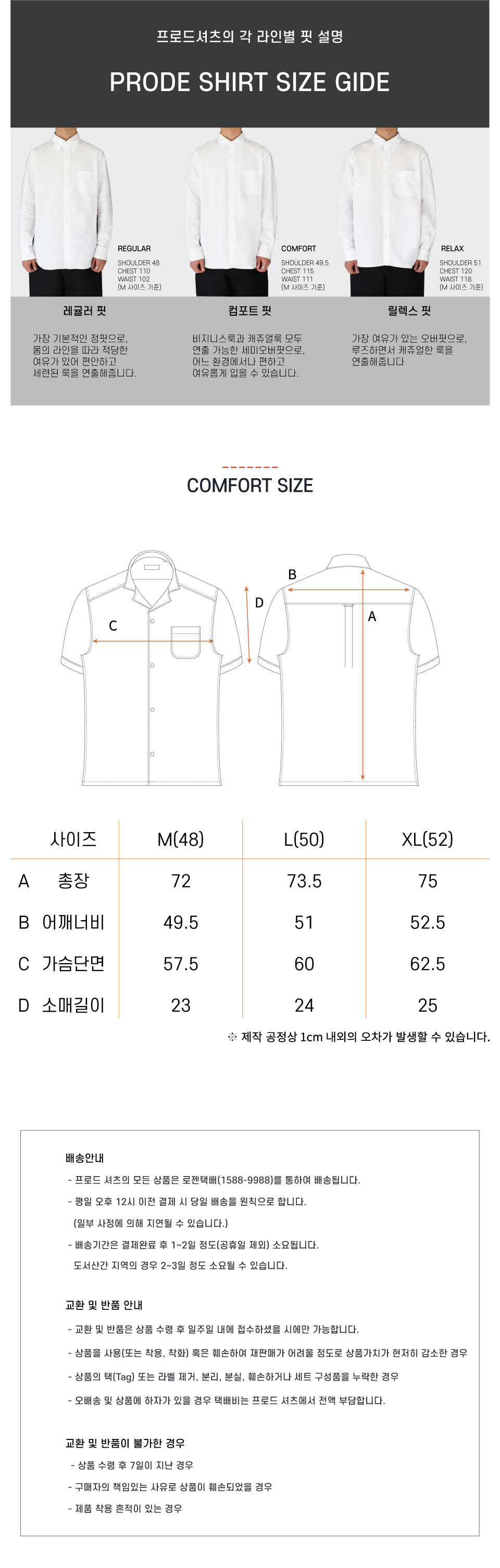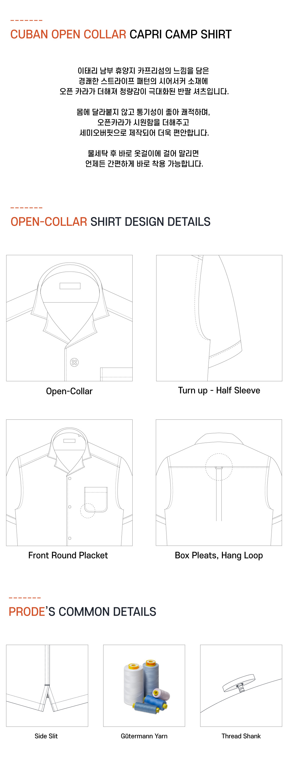 몸에 달라붙지 않고 통기성이 좋아 쾌적하며, 오픈카라가 시원함을 더해주고 세미오버핏으로 제작되어 더욱 편안합니다.