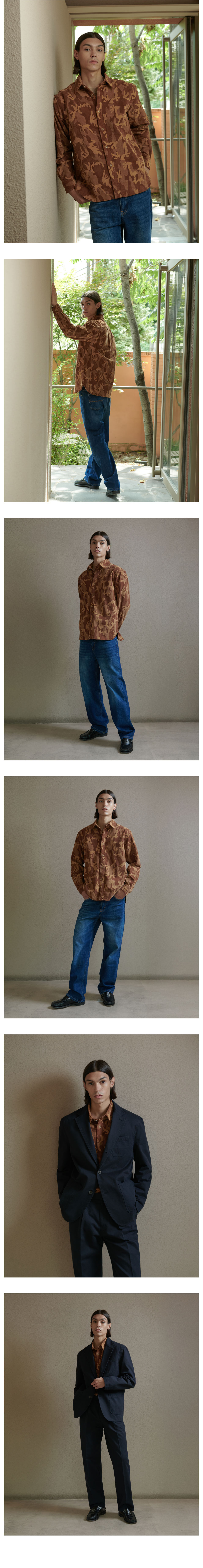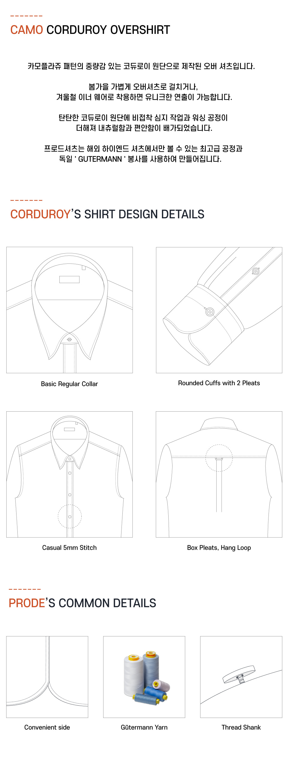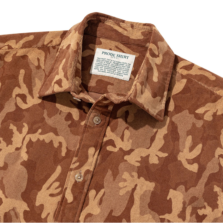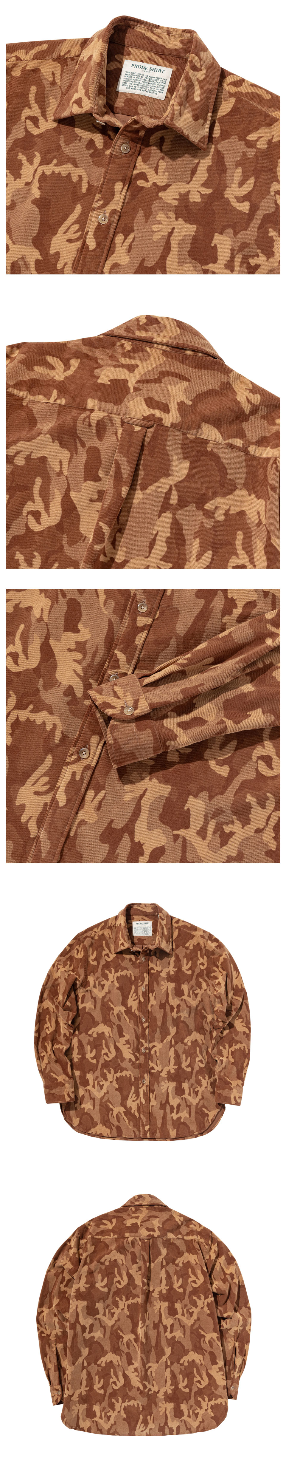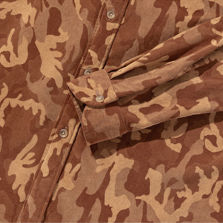 카모플라쥬 패턴의 중량감 있는 코듀로이 원단으로 제작된 오버 셔츠입니다.