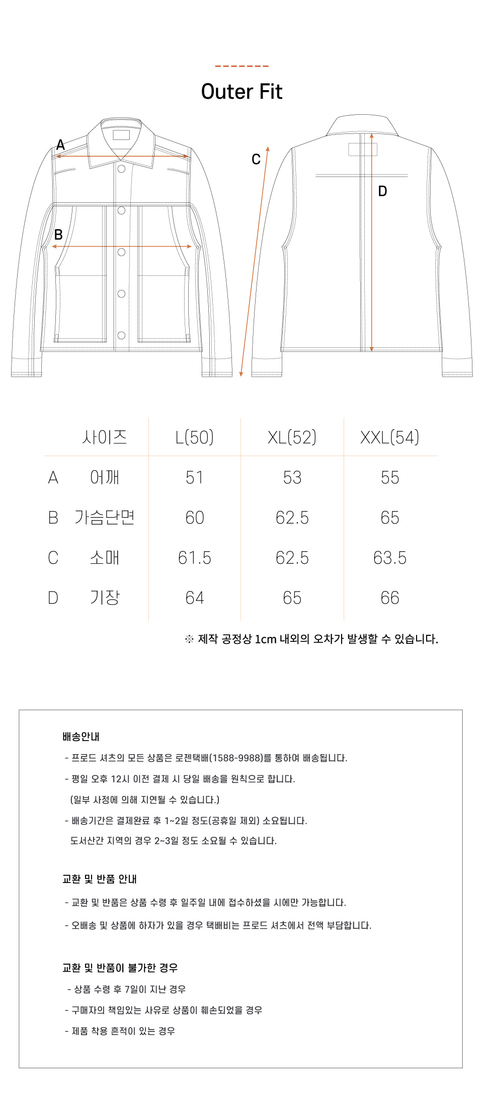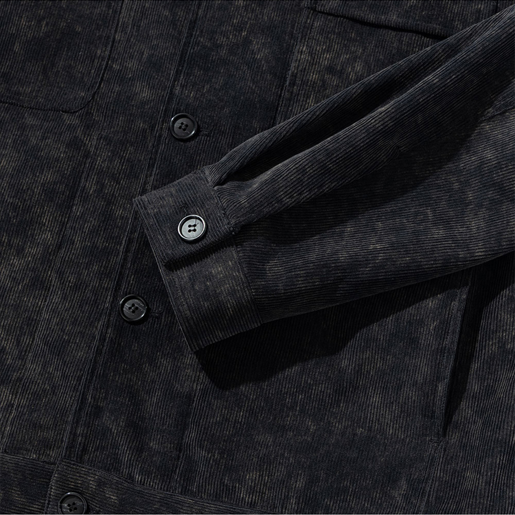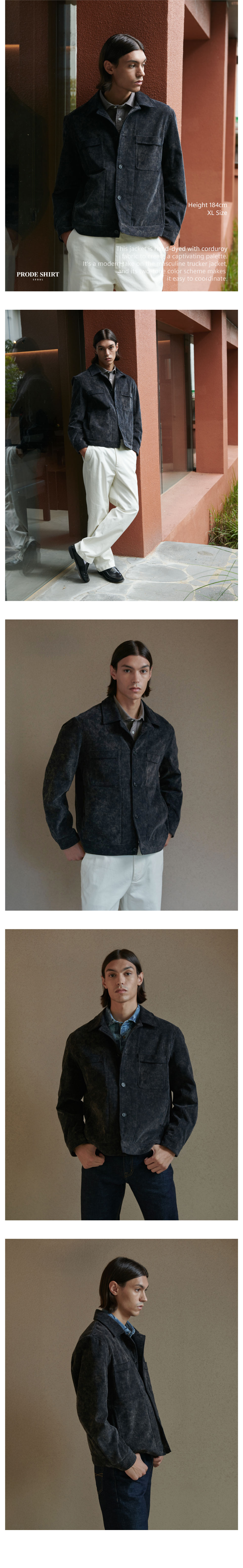 발색감이 뛰어난 코듀로이 원단에 수작업 염색이 덧대어져 은은하고 매력적인 색감을 구현한 셔켓입니다.