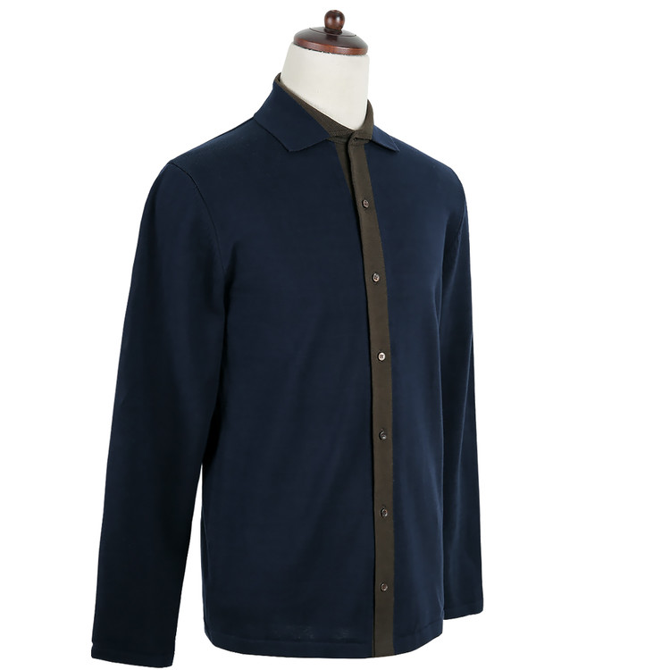 또한 카라 편직 성형을 통해 견고한 형태를 유지하면서도 자연스러운 카라 굴림과 입체감을 주어 일반 니트 카라 셔츠와 차별화된 장점을 가지고 있습니다.