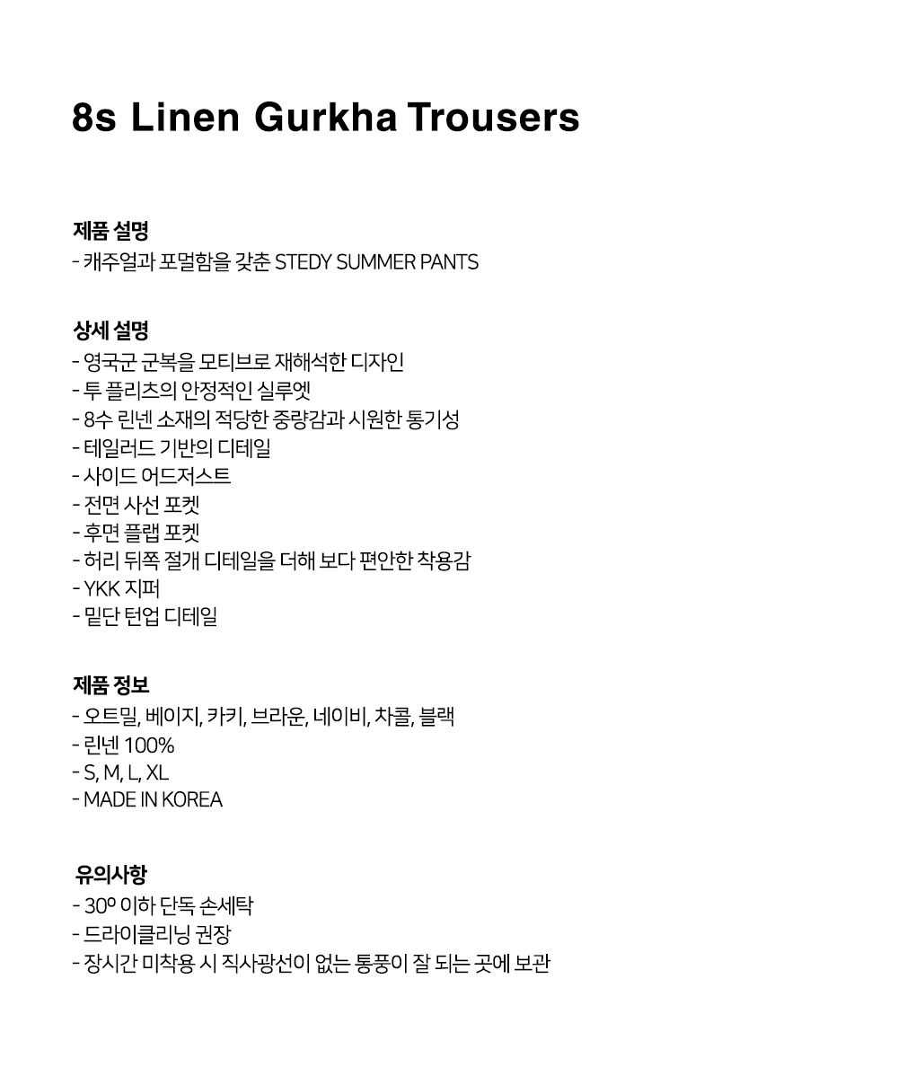 - 오트밀, 베이지, 카키, 브라운, 네이비, 차콜, 블랙